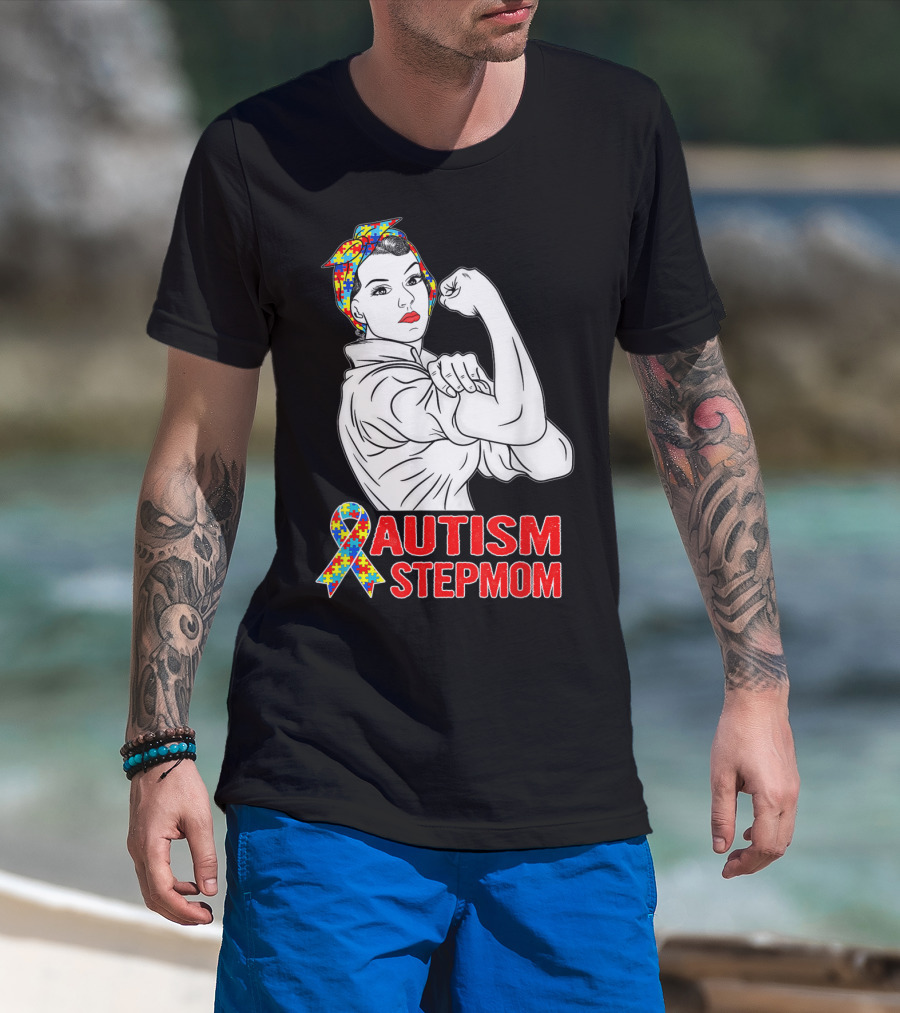 Unbreakable Autism Stepmom Awareness Iconic Rosie The Riveter T-Shirt