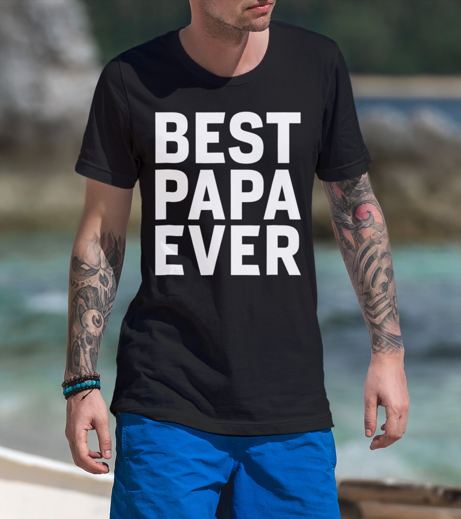 The Best Dad Daddy Him Best Papa Ever Mens s68 T-shirt is designed for everyday wear and a consistent fit. Fabric is pre-shrunk ring-spun cotton with durable stitching. See the size chart below for exact measurements.