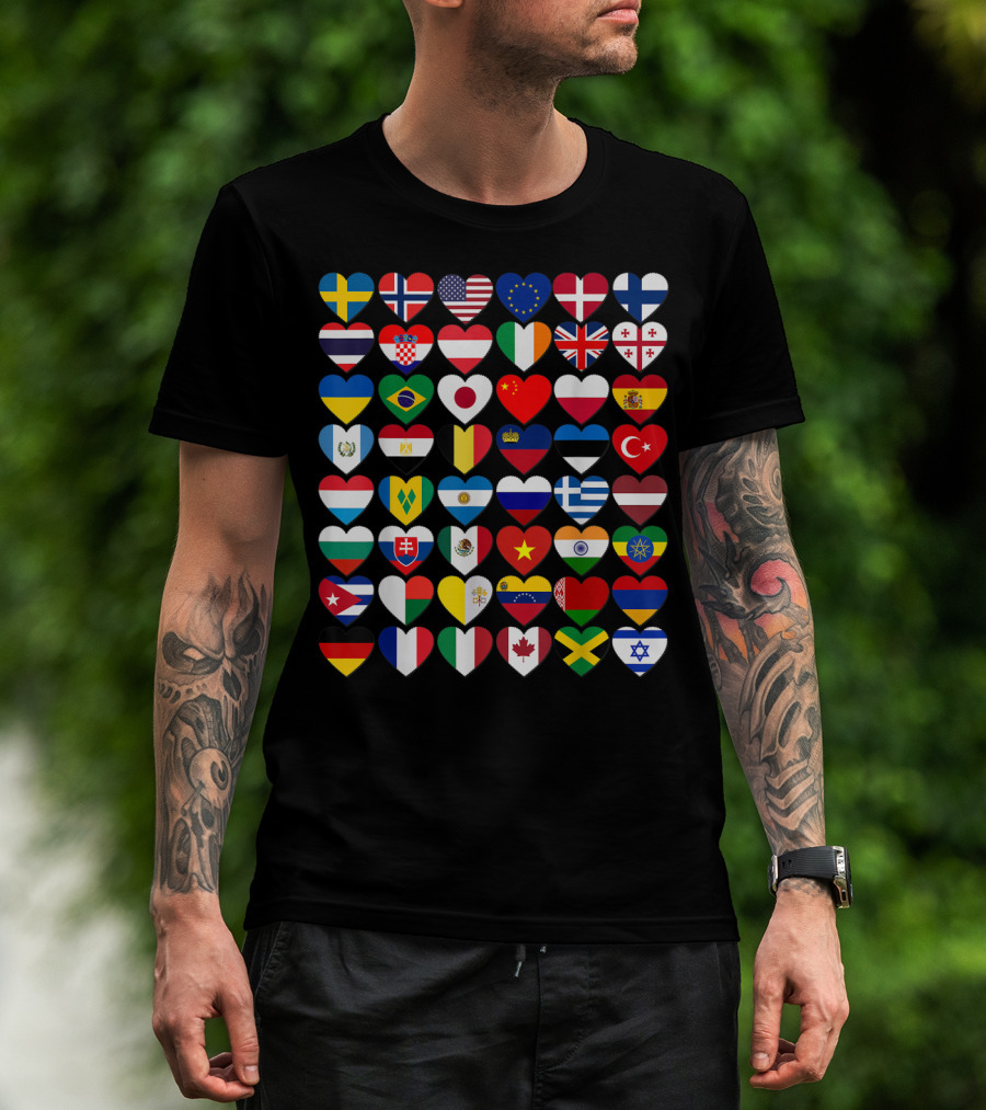 Flags Of The Countries Of The World Heart Shape Collection T-Shirt