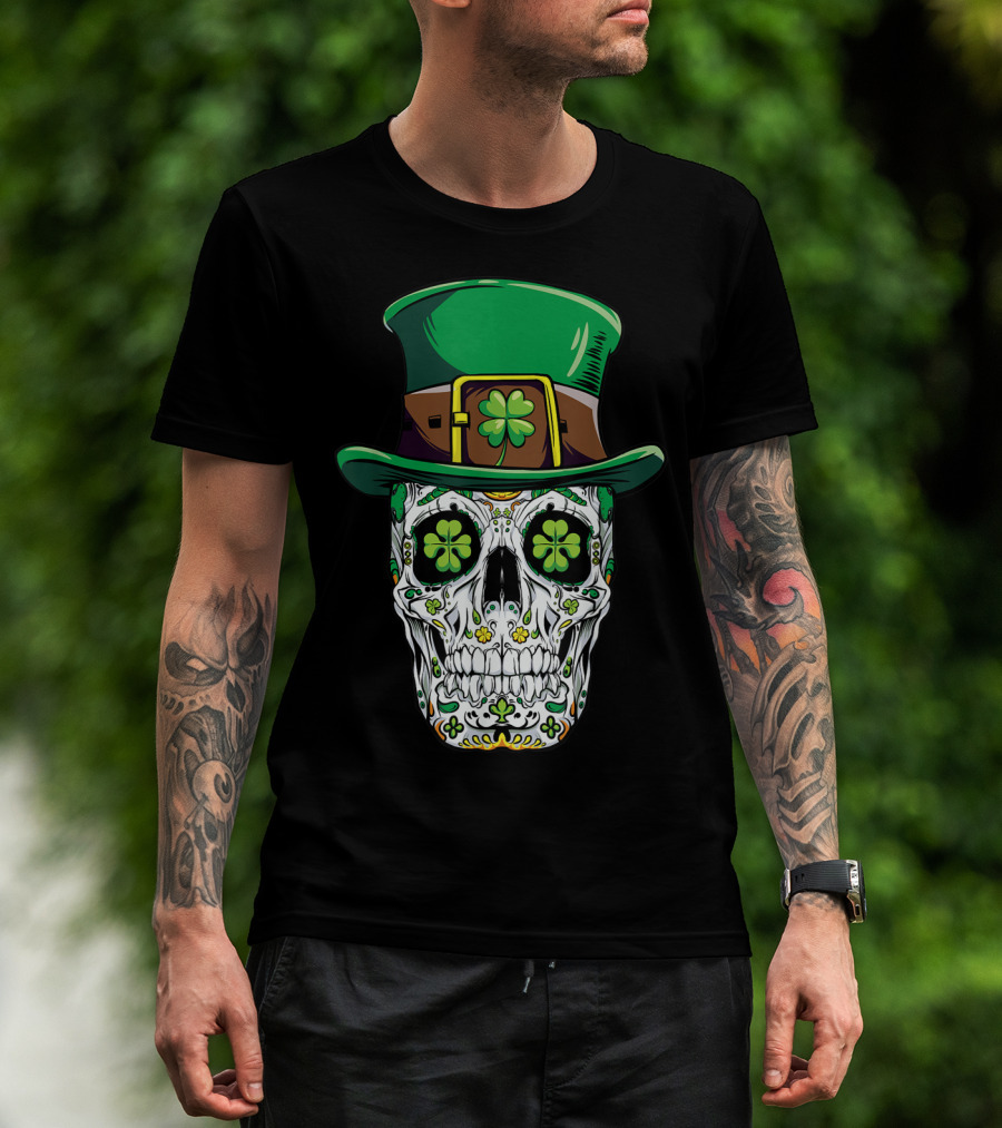 The Sugar Skull Clover Top Hat T-shirt is designed for everyday wear and a consistent fit. Fabric is pre-shrunk ring-spun cotton with durable stitching. See the size chart below for exact measurements.
