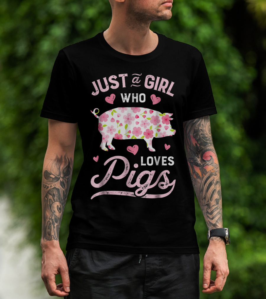 Just A Girl Who Loves Pigs With Floral And Heart Accents T-Shirt