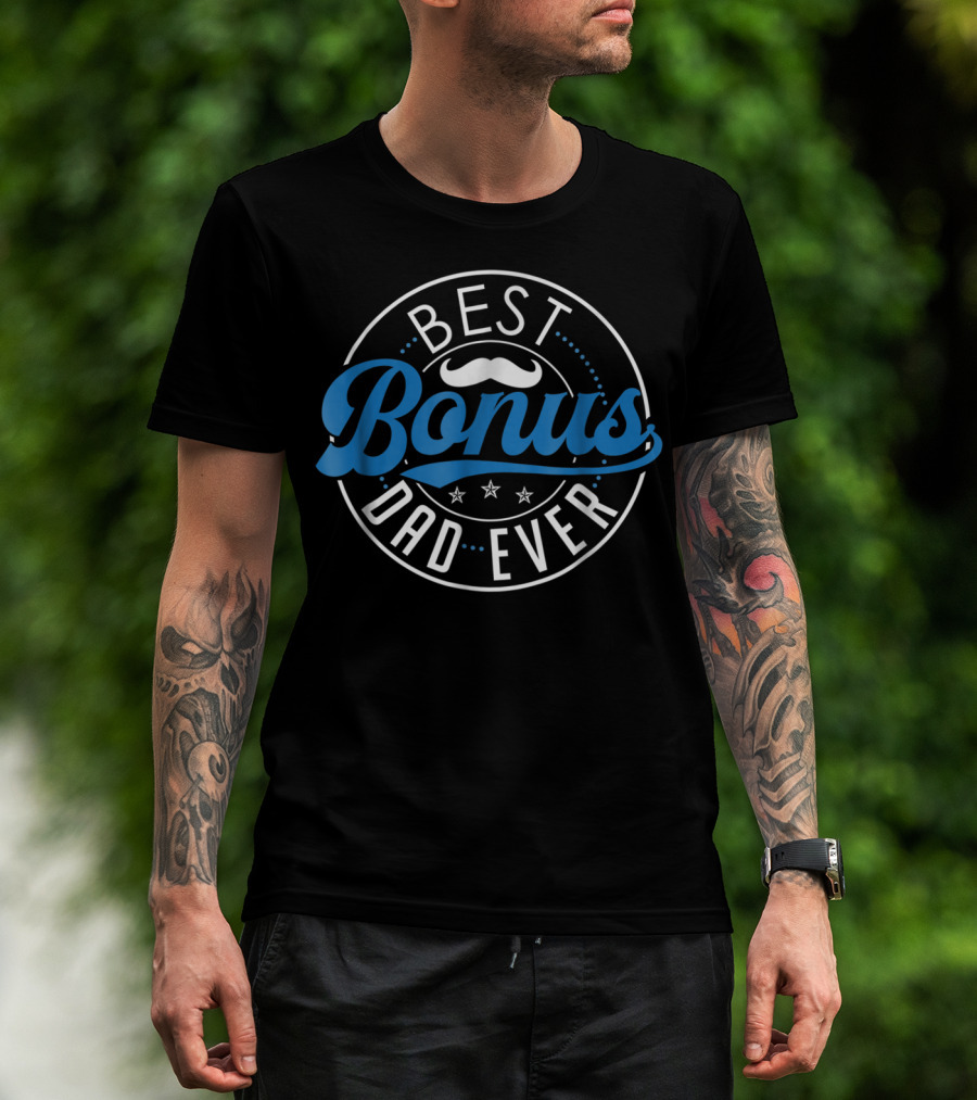 Best Bonus Dad Ever Funny Stepdad Stepfather Mustache Stars T-Shirt