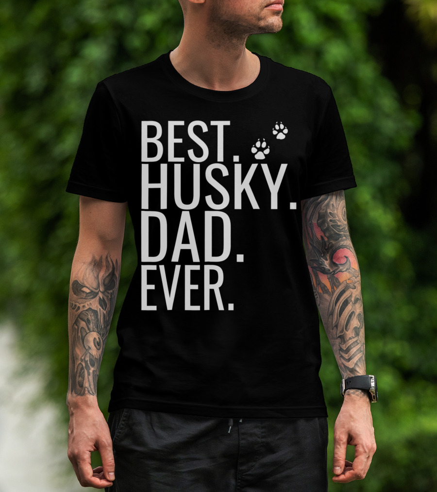 The BEST HUSKY DAD EVER Mens Best Husky Dad Ever for dog lovers93 T-shirt is designed for everyday wear and a consistent fit. Fabric is pre-shrunk ring-spun cotton with durable stitching. See the size chart below for exact measurements.