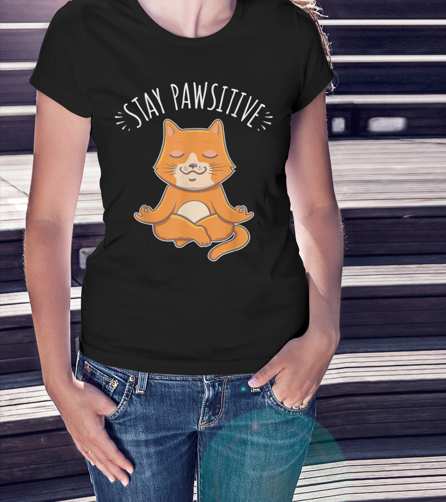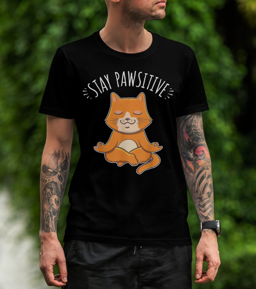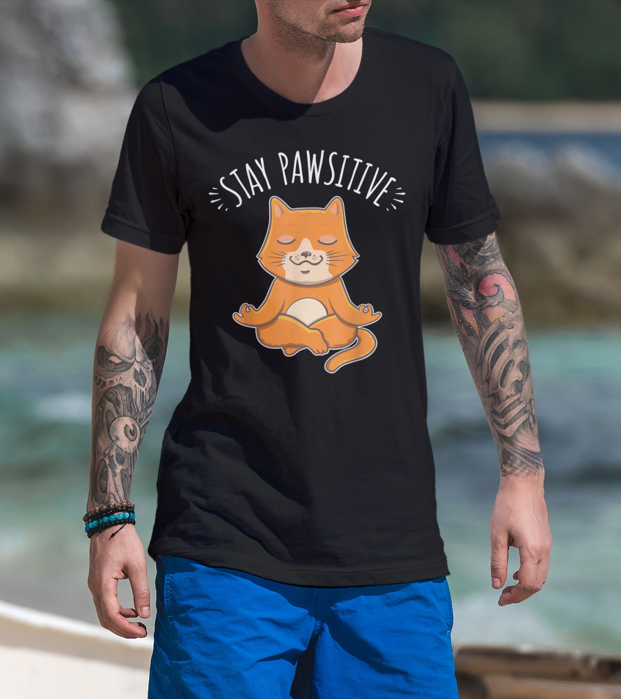 Stay Pawsitive Funny Cat Yoga Meditation T-Shirt
