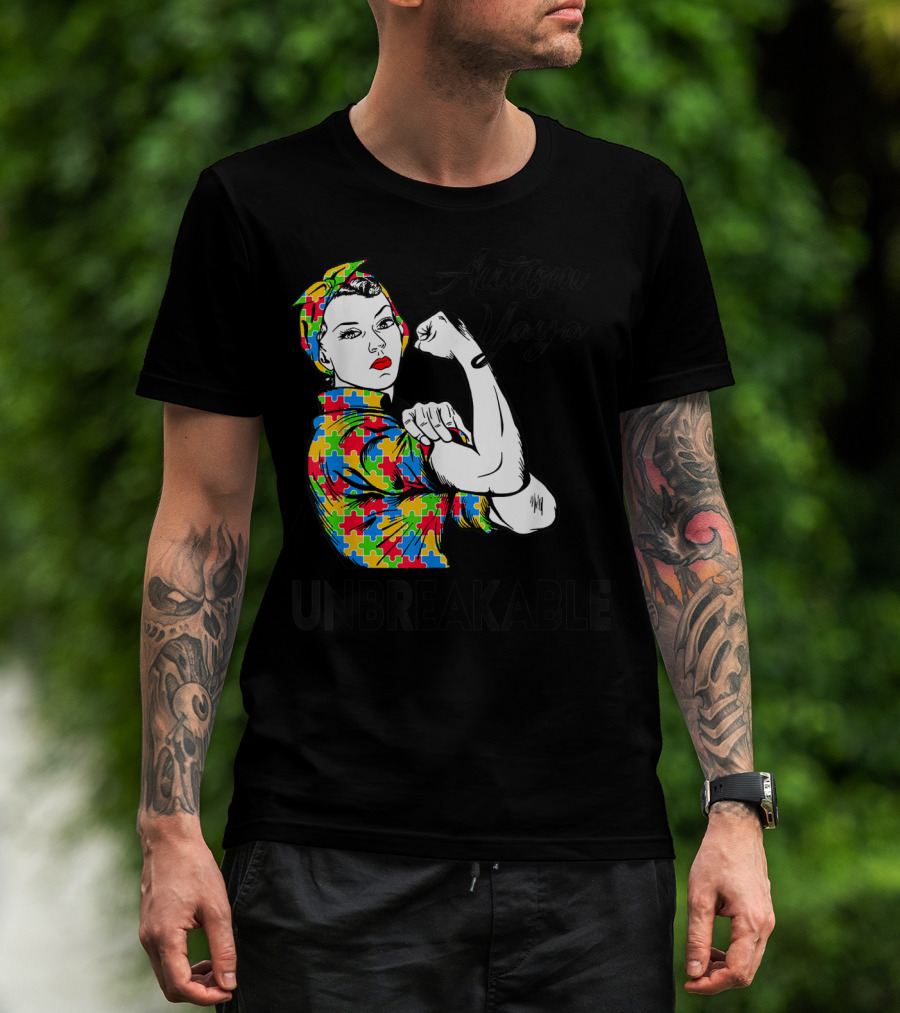 The Autism Yaya Unbreakable Autism Awareness Puzzle Pattern Iconic Pose T-shirt is designed for everyday wear and a consistent fit. Fabric is pre-shrunk ring-spun cotton with durable stitching. See the size chart below for exact measurements.