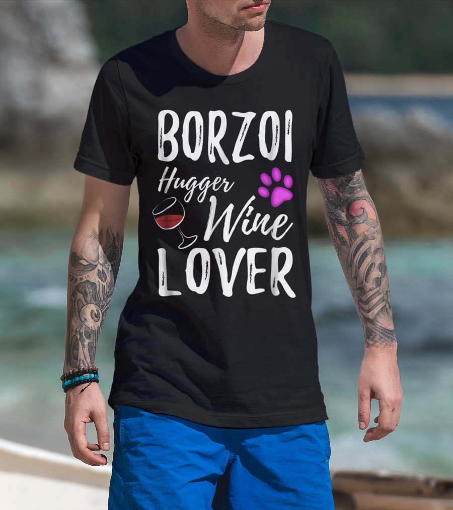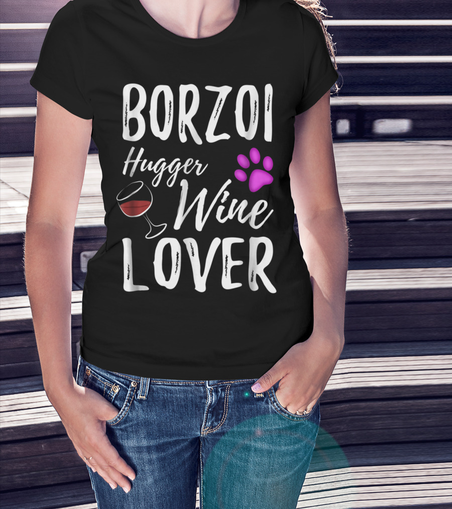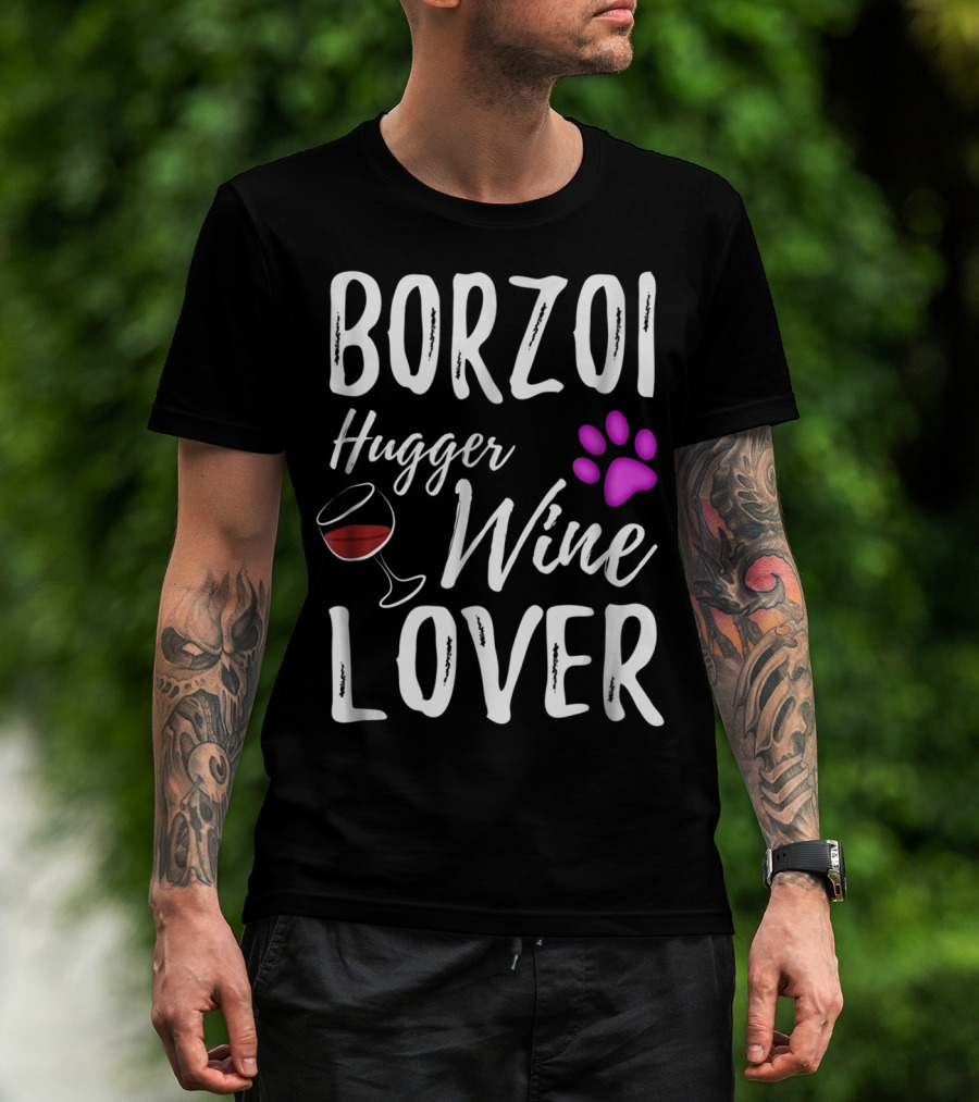 BORZOI Hugger Wine Lover Dog Mom Or Dog Dad T-Shirt