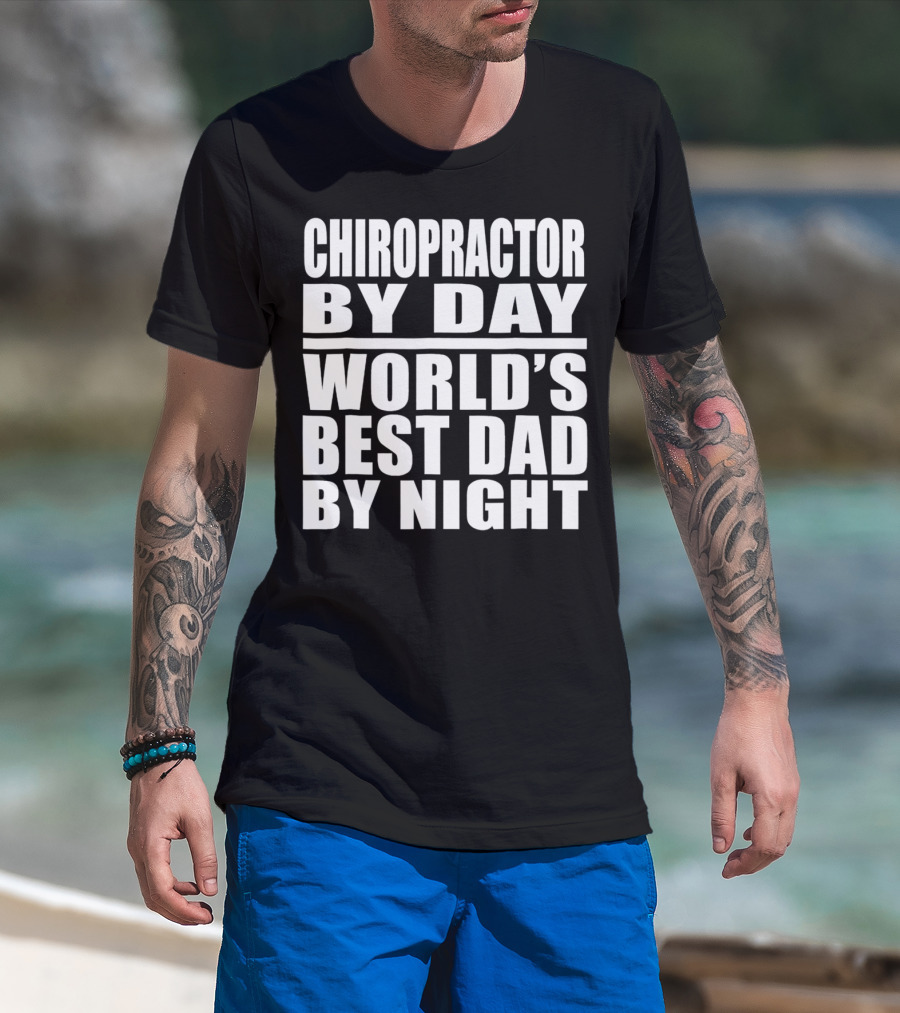Chiropractor By Day World's Best Dad By Night Mens Dad Chiropractor T-Shirt
