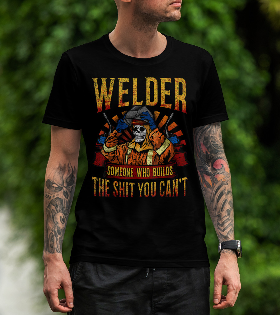 The Welder Someone Who Builds The Shit You Can't Fathers Day Mask Metal Hood Gloves Gas Welding T-shirt is designed for everyday wear and a consistent fit. Fabric is pre-shrunk ring-spun cotton with durable stitching. See the size chart below for exact measurements.
