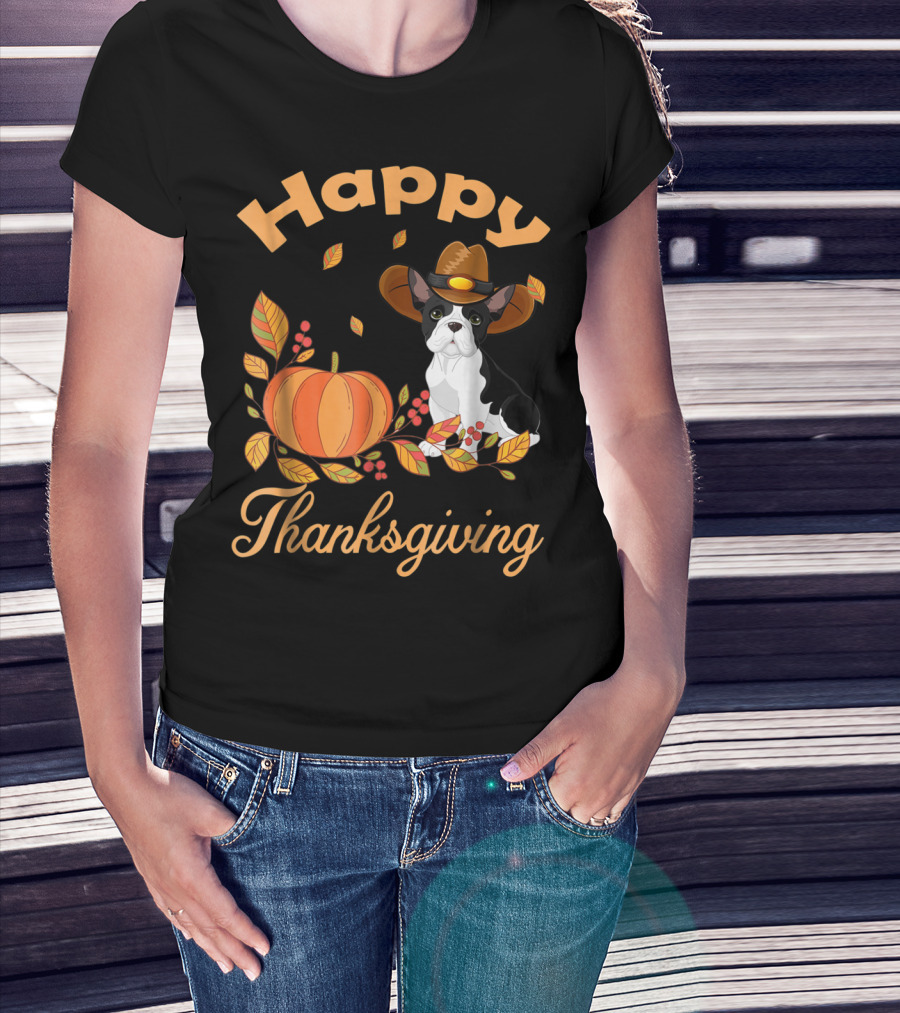 Happy Thanksgiving French Bulldogs Pilgrim Pumpkin Leaves T-Shirt