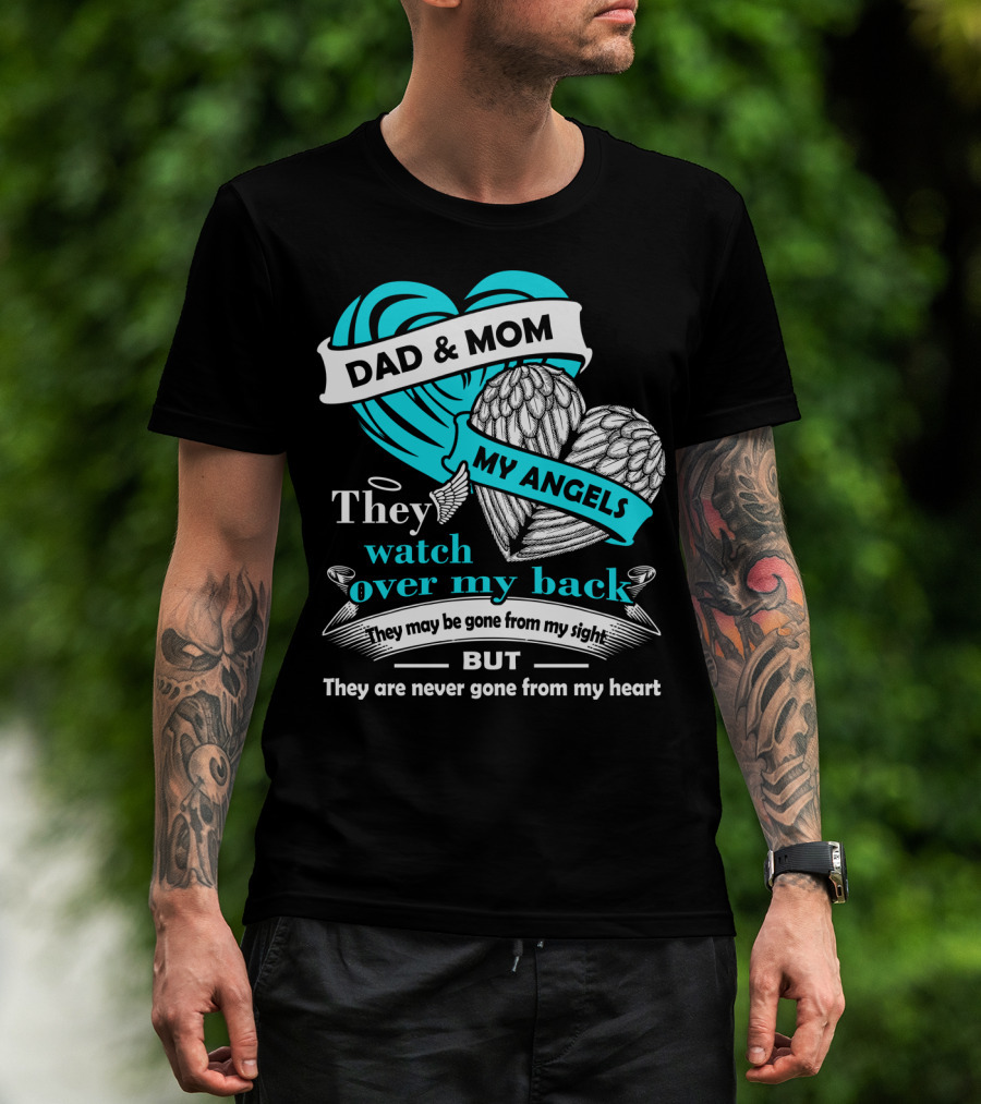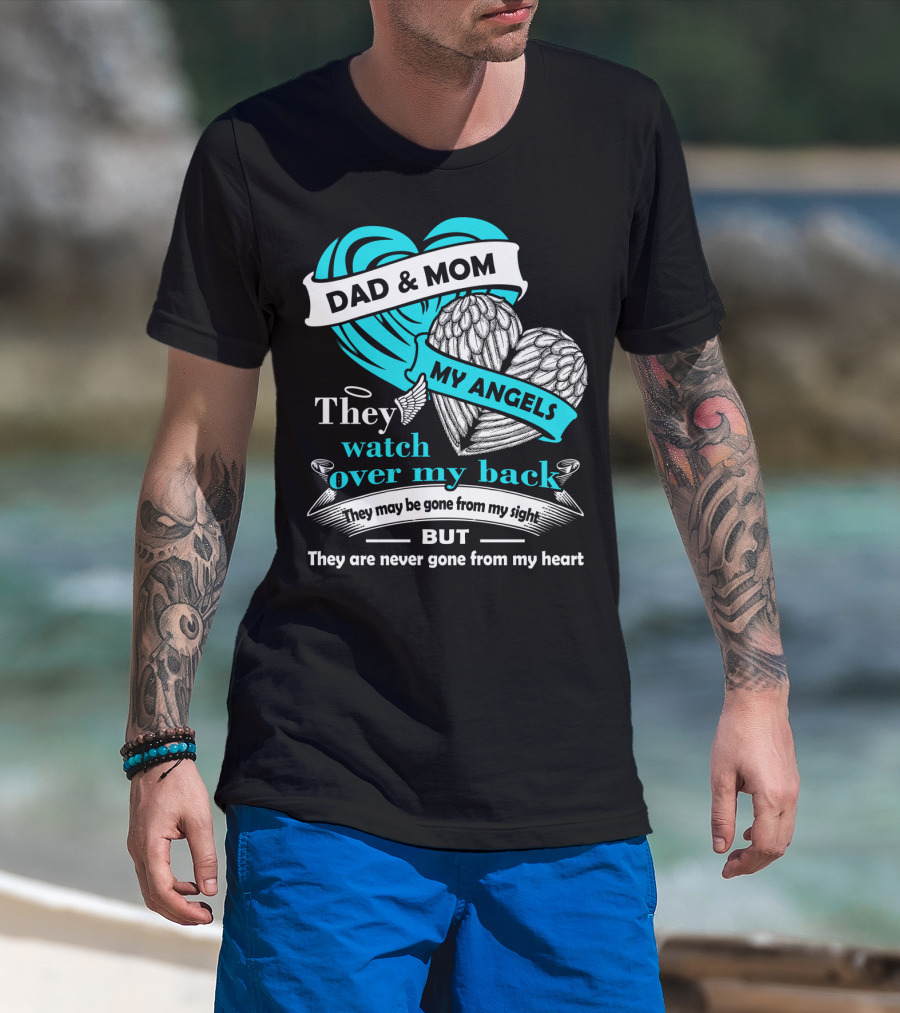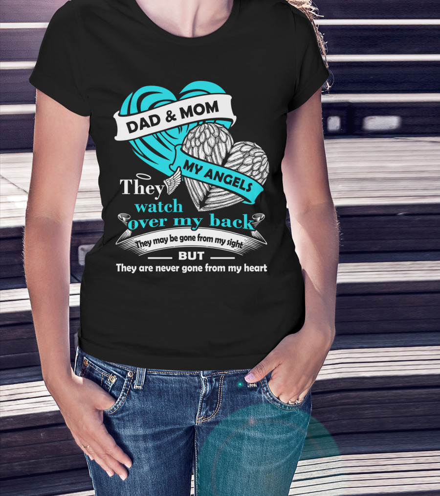 Dad And Mom My Angels They Watch Over My Back Never Gone From My Heart T-Shirt