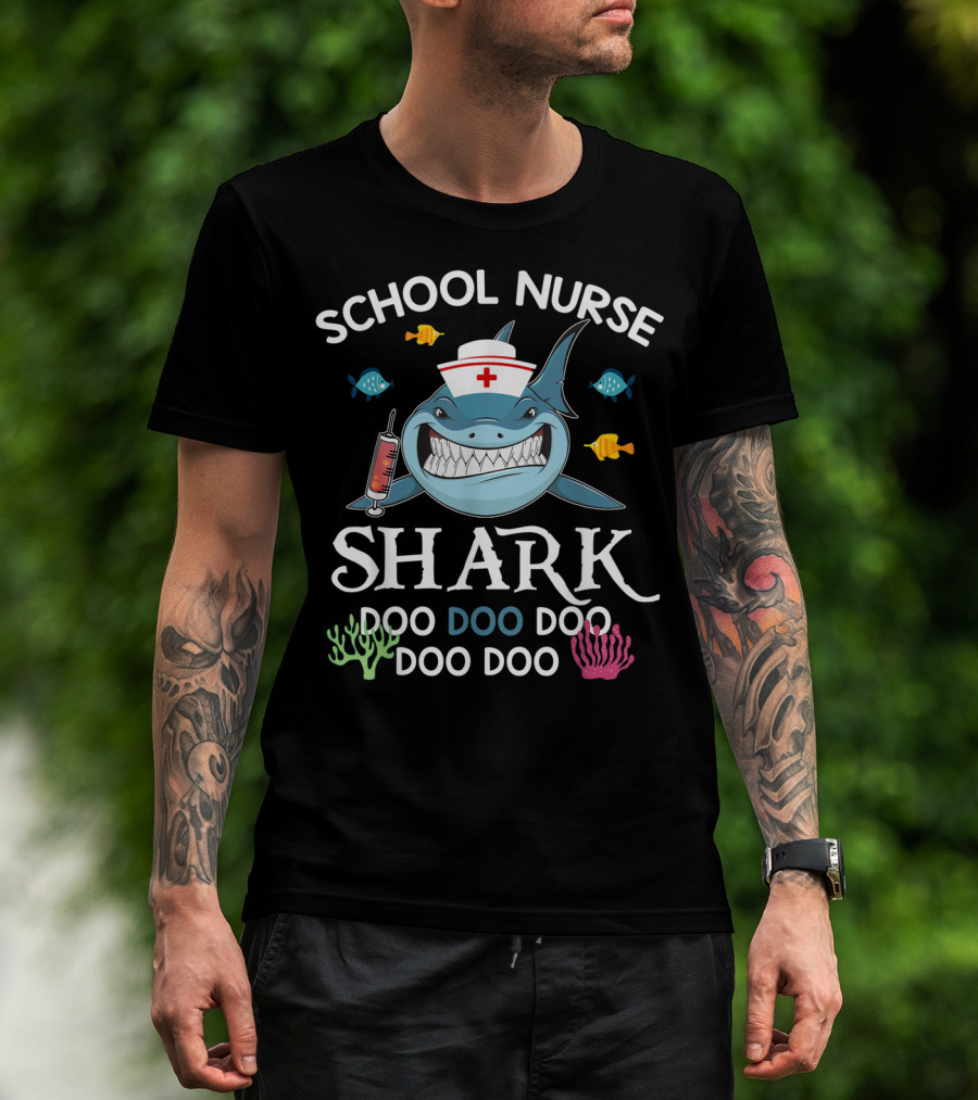 School Nurse Shark Doo Doo Doo Funny Nurse With Syringe And Fish T-Shirt