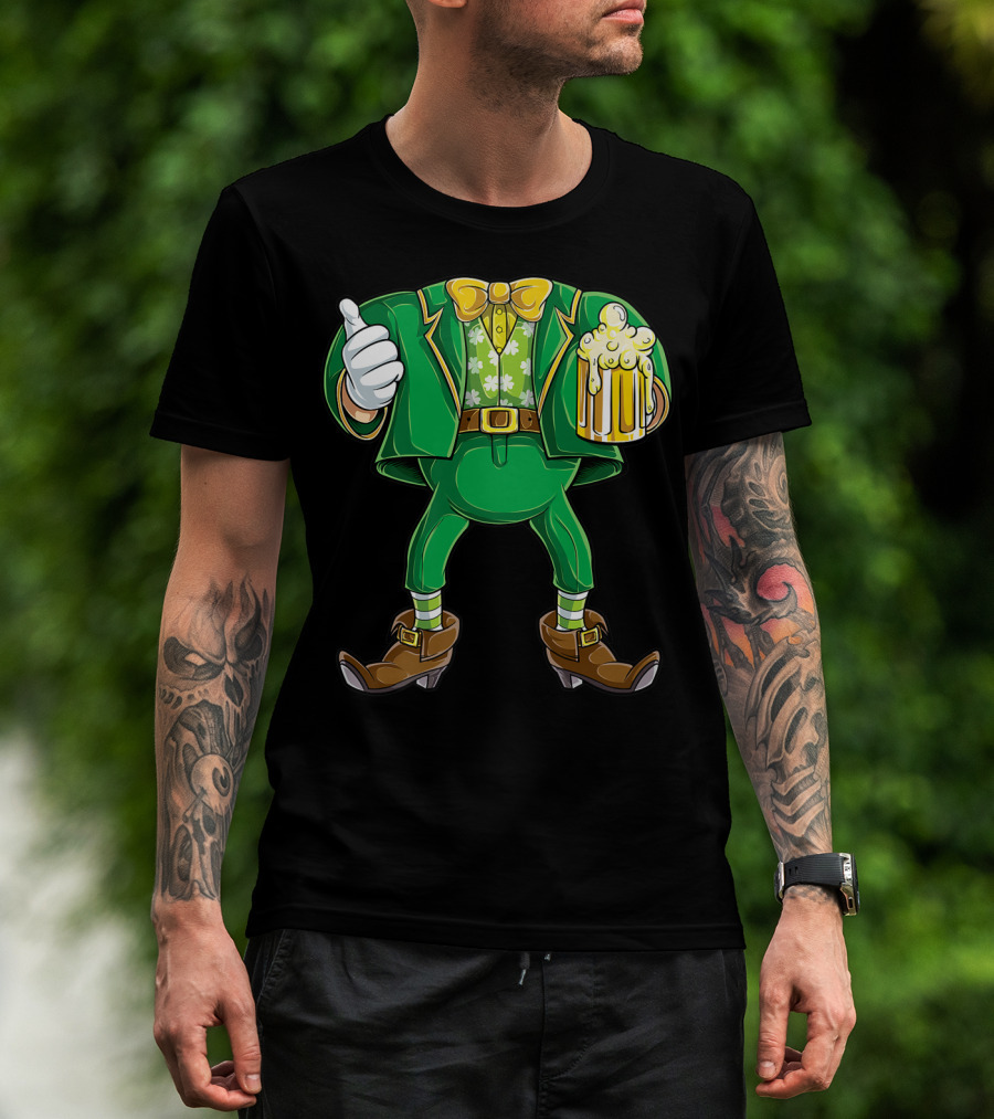 The Leprechaun Costume St Patricks Day Men Beer Holding Foamy Mug and Thumbs Up T-shirt is designed for everyday wear and a consistent fit. Fabric is pre-shrunk ring-spun cotton with durable stitching. See the size chart below for exact measurements.