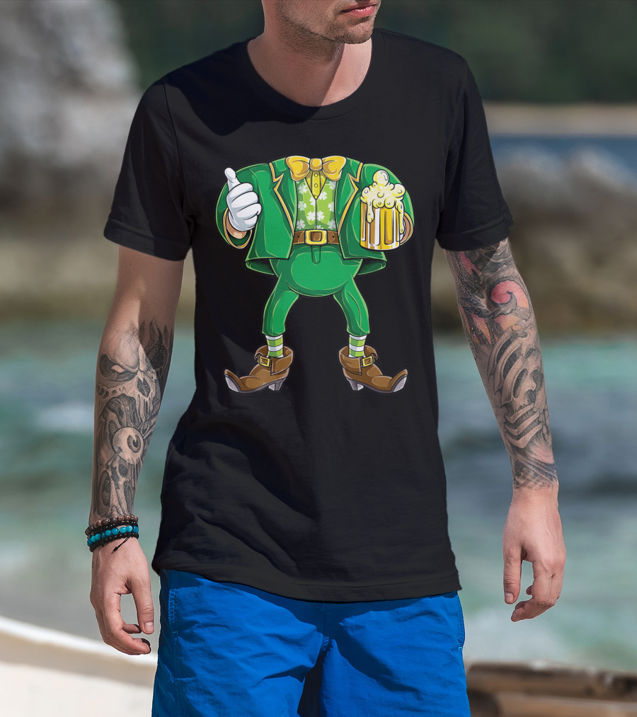 Leprechaun Costume St Patricks Day Men Beer Holding Foamy Mug And Thumbs Up T-Shirt