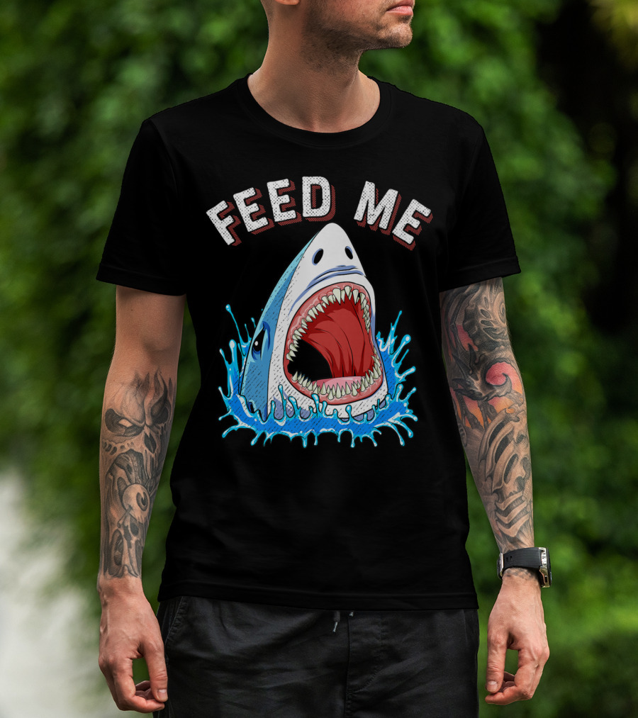 Feed Me Shark Head Lover Jawsome Ocean Splash T-Shirt