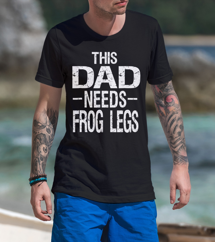 The This Dad Needs Frog Legs T-shirt is designed for everyday wear and a consistent fit. Fabric is pre-shrunk ring-spun cotton with durable stitching. See the size chart below for exact measurements.
