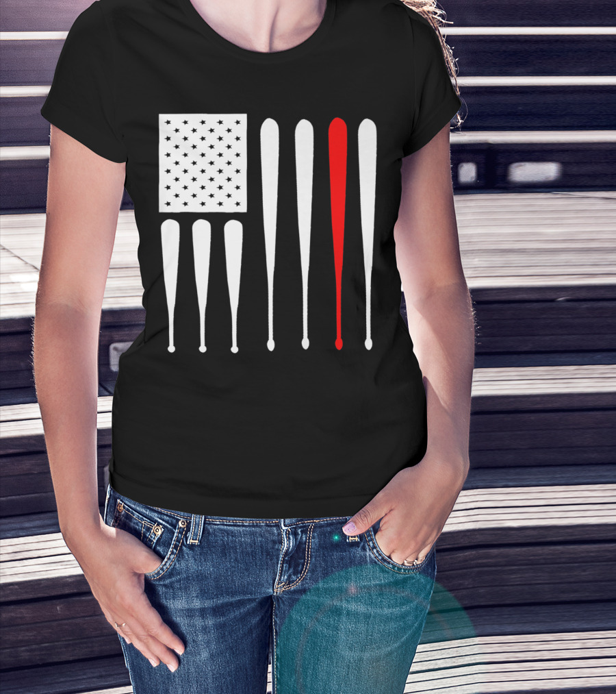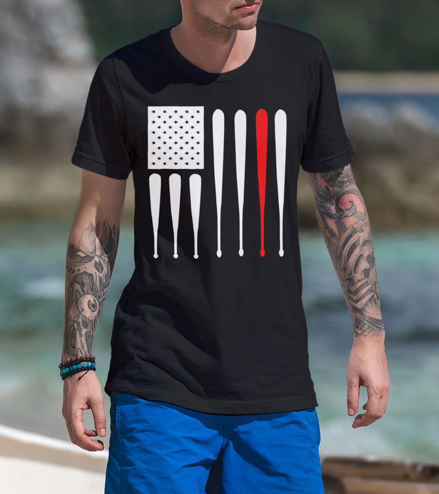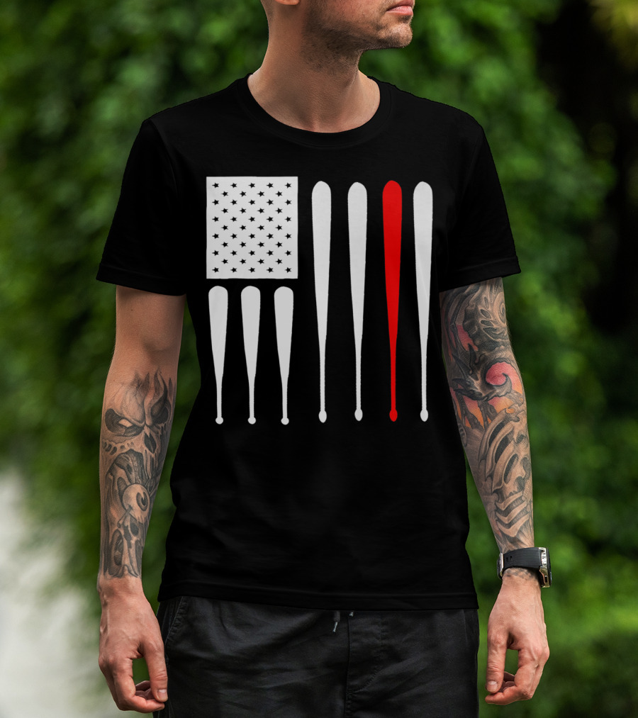 American Flag Baseball Dad Husband Patriotic Baseball Bats T-Shirt