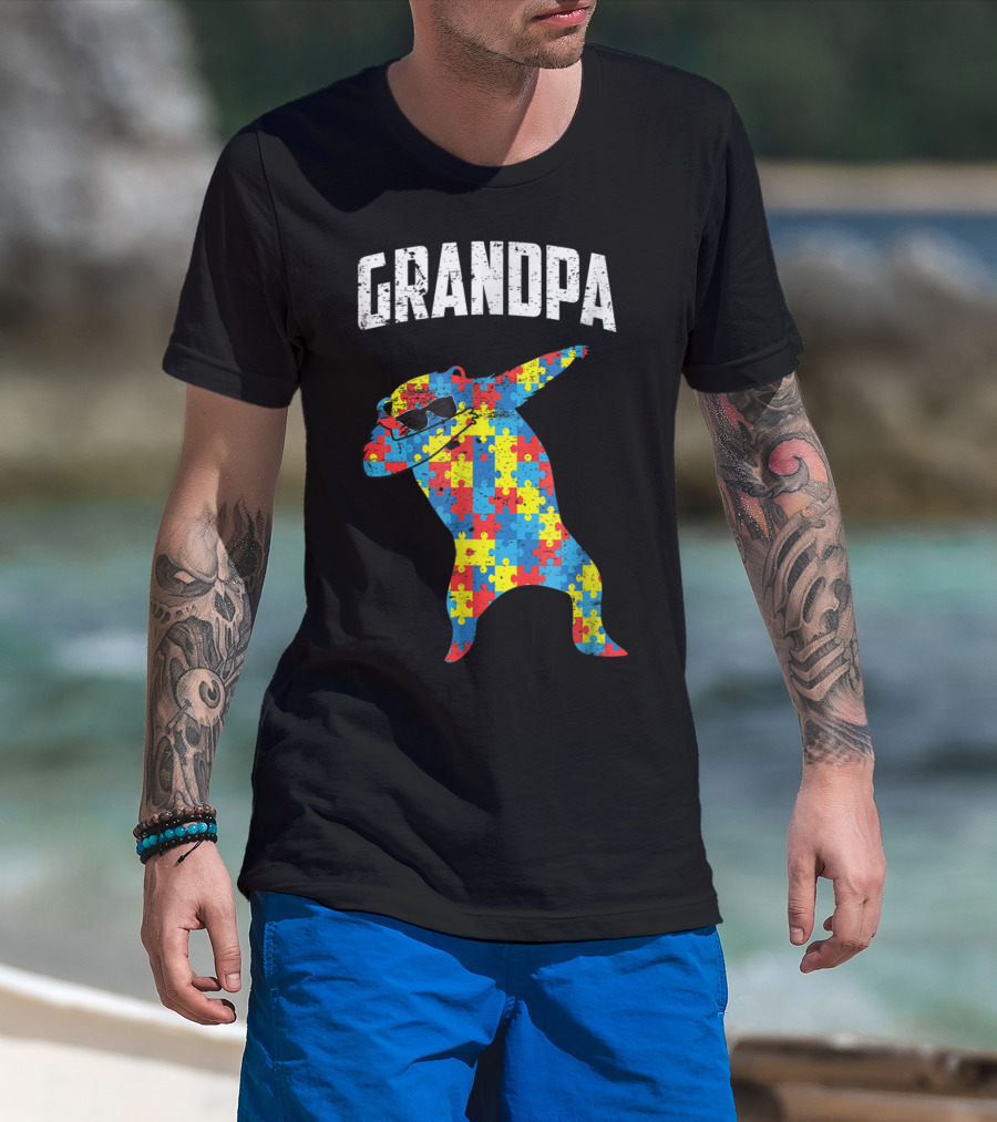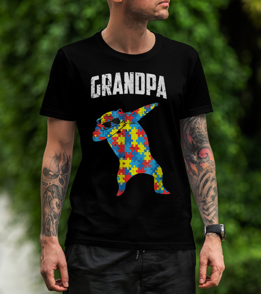Grandpa Autism Bear Dabbing Puzzle Glasses T-Shirt