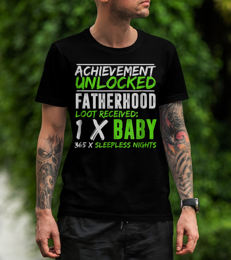 Achievement Unlocked Fatherhood Loot Received 1x Baby 365x Sleepless Nights T-Shirt