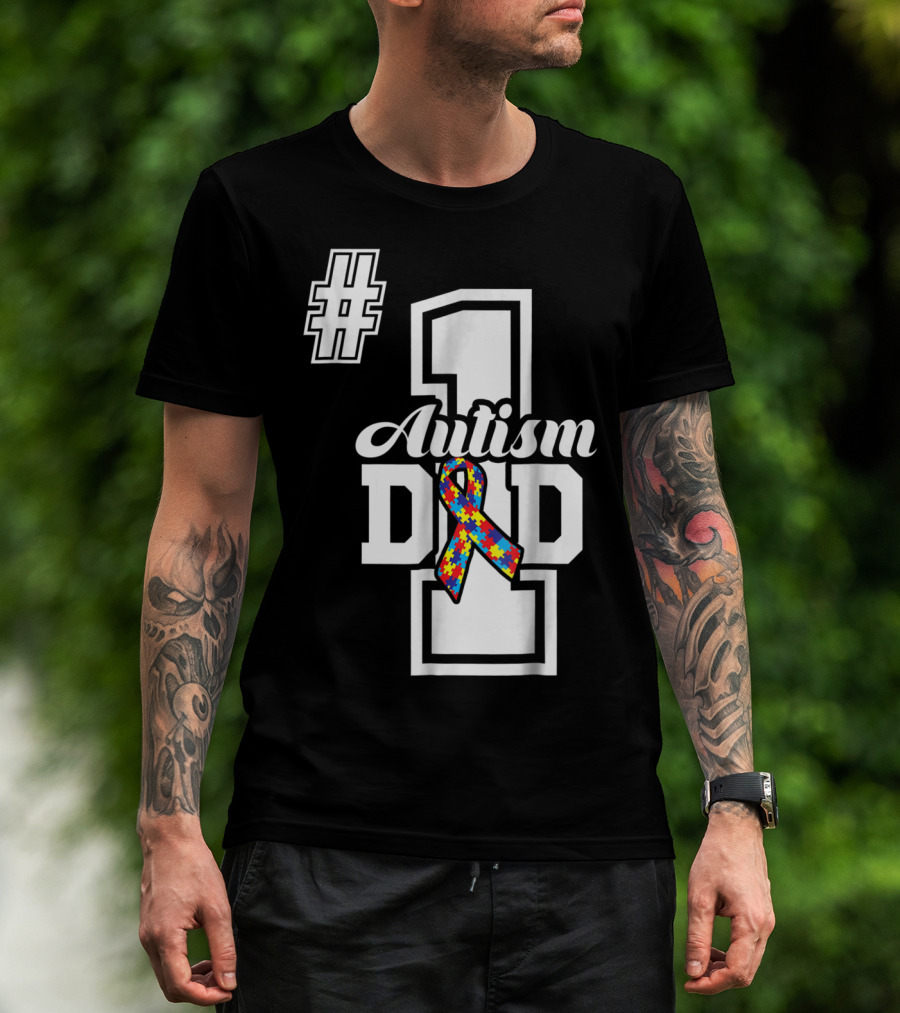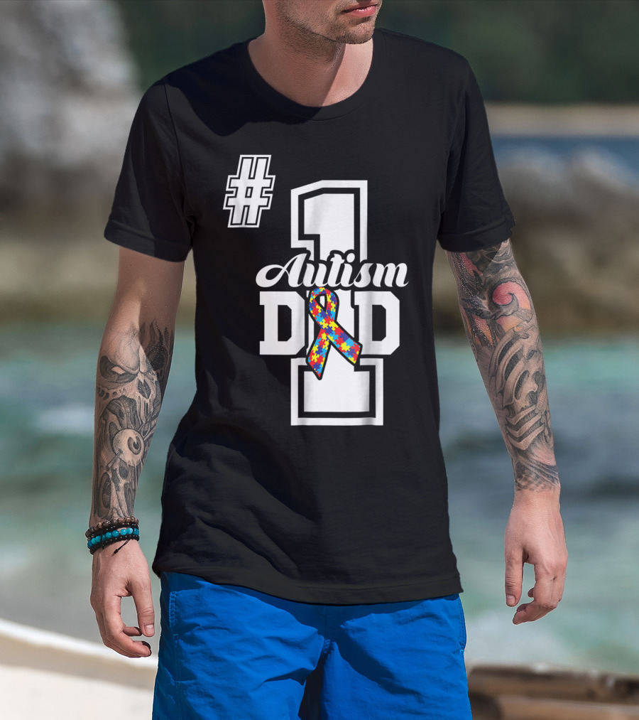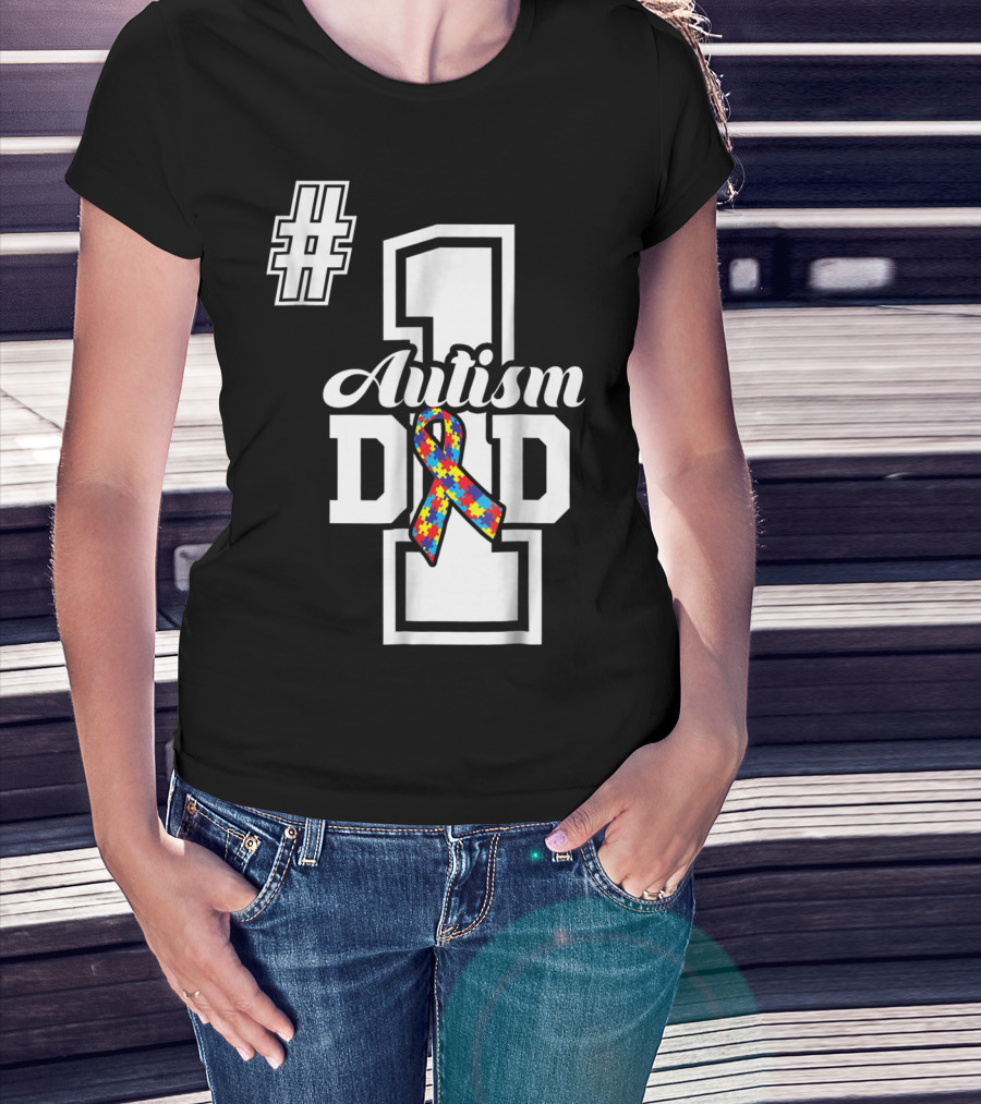 1 Autism Dad Autism Awareness Puzzle T-Shirt