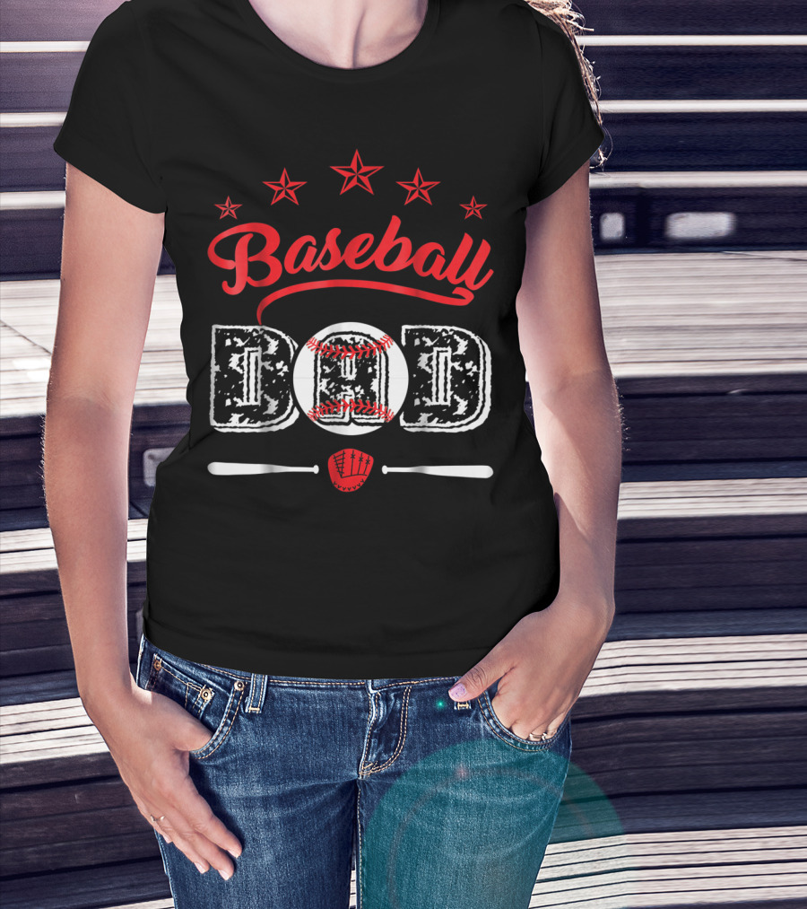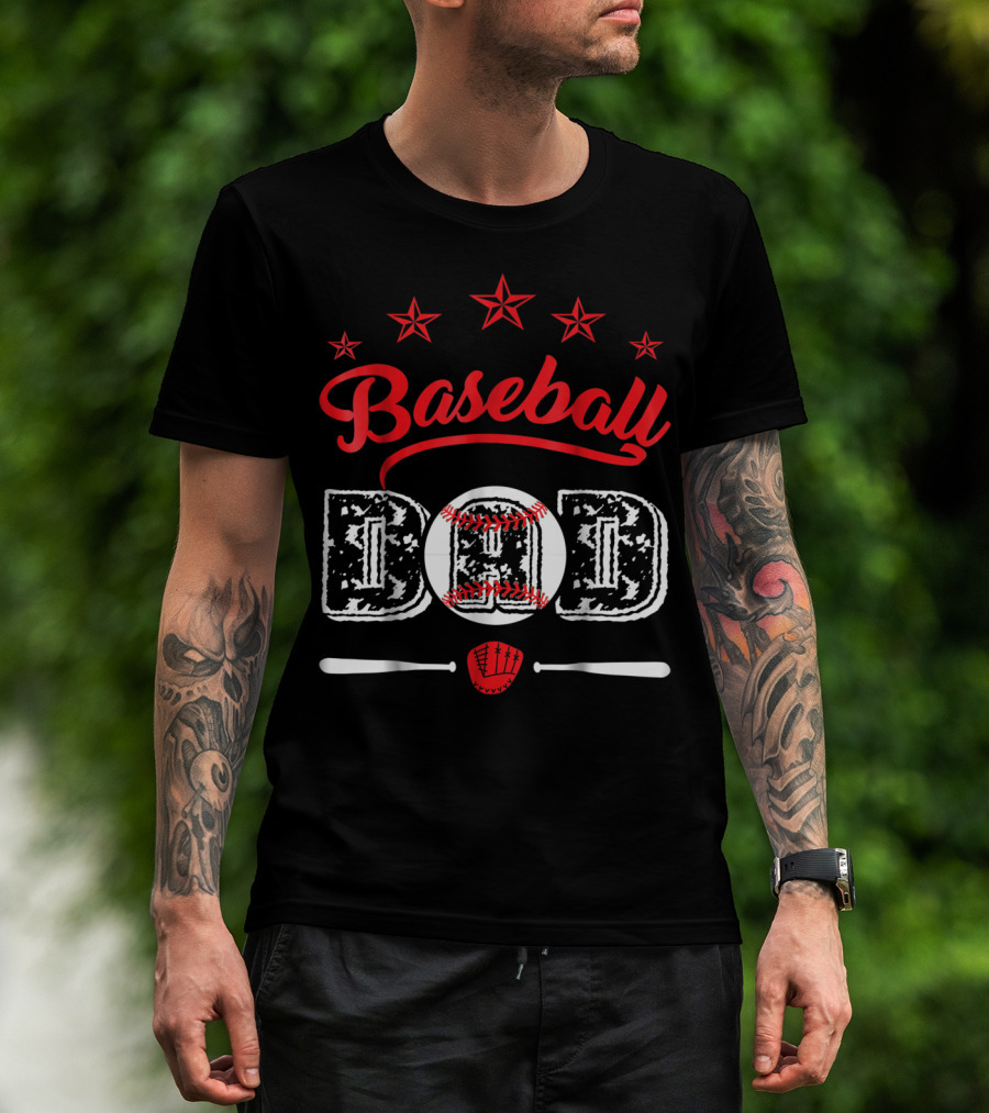 The Baseball Dad Stars and Bats T-shirt is designed for everyday wear and a consistent fit. Fabric is pre-shrunk ring-spun cotton with durable stitching. See the size chart below for exact measurements.