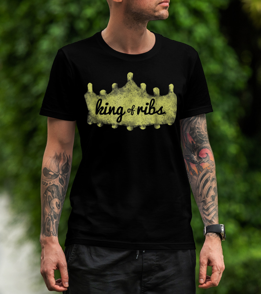 The king of ribs BBQ RIBS king Chef Funny Foodie Dad96 T-shirt is designed for everyday wear and a consistent fit. Fabric is pre-shrunk ring-spun cotton with durable stitching. See the size chart below for exact measurements.