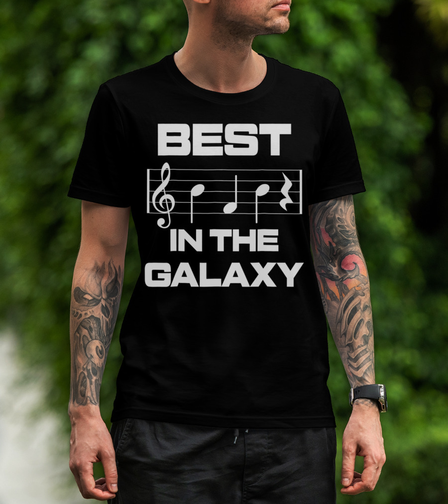 Best Dad In The Galaxy Musician Bass Clef Notes T-Shirt