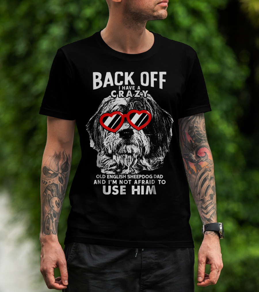 Back Off I Have A Crazy Old English Sheepdog Dad And I'm Not Afraid To Use Him T-Shirt