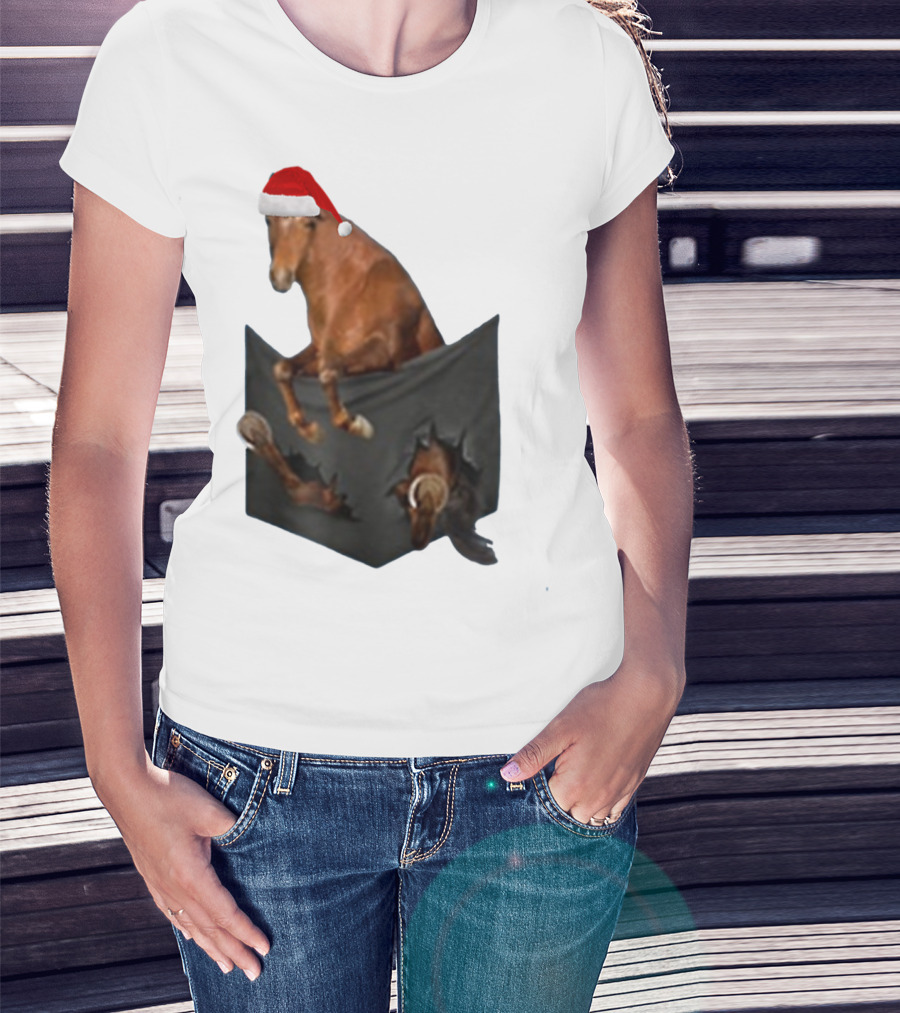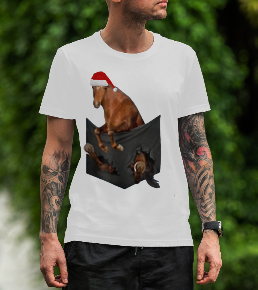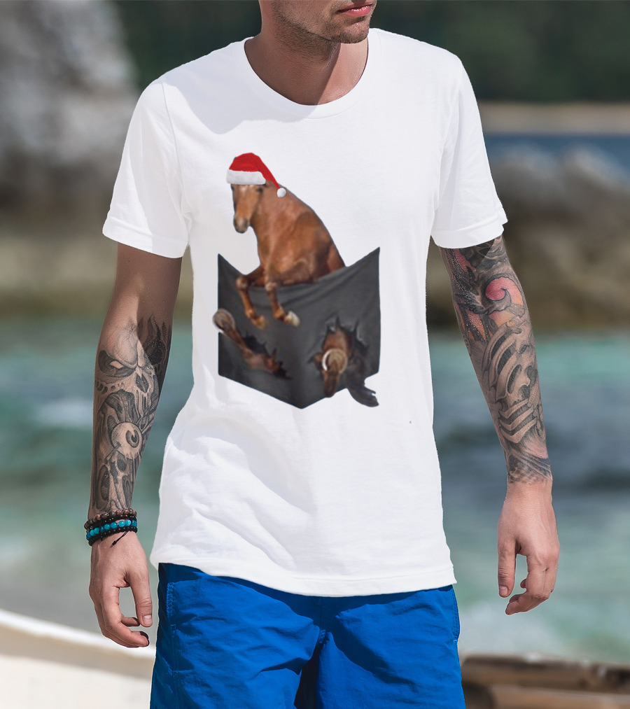 Santa Hat Criollo Horse Bursting From Pocket T-Shirt