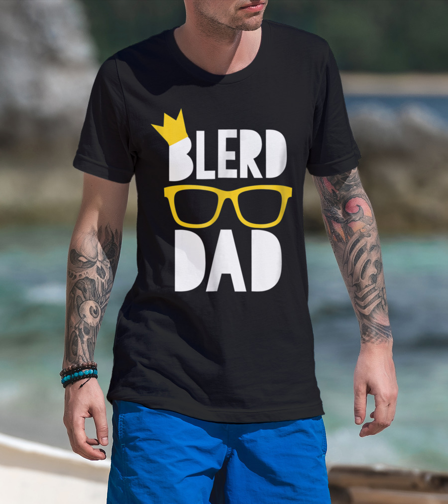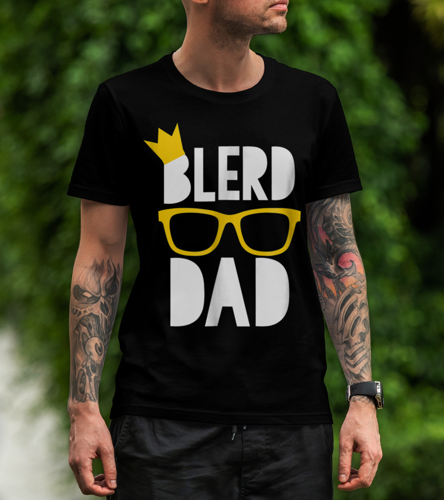Blerd Dad Yellow Geeky Glasses Crown Black Nerd Dad T-Shirt
