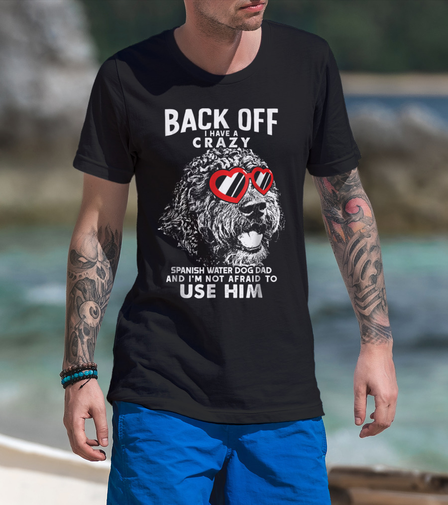 Back Off I Have A Crazy Spanish Water Dog Dad And I'm Not Afraid To Use Him T-Shirt