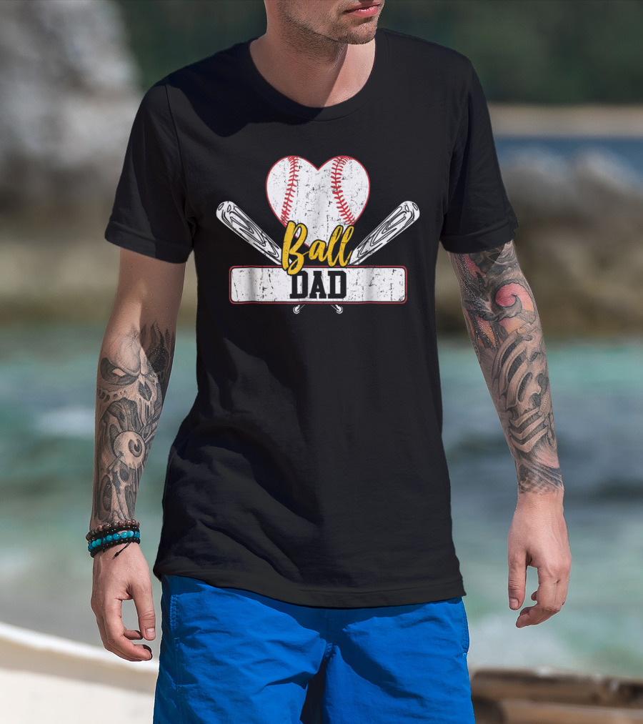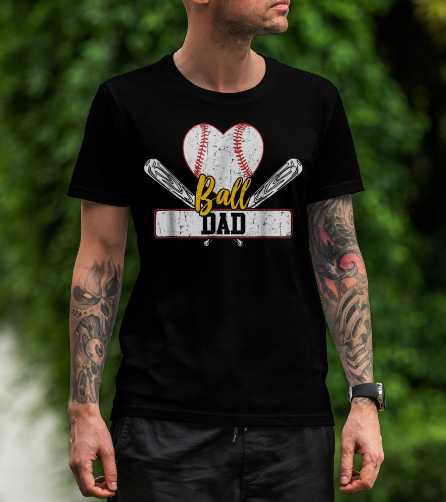 The Ball Dad Heart Baseball Bat T-shirt is designed for everyday wear and a consistent fit. Fabric is pre-shrunk ring-spun cotton with durable stitching. See the size chart below for exact measurements.