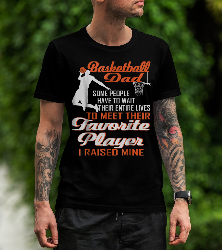 The Basketball Dad Some People Have to Wait Their Entire Lives to Meet Their Favorite Player I Raised Mine T-shirt is designed for everyday wear and a consistent fit. Fabric is pre-shrunk ring-spun cotton with durable stitching. See the size chart below for exact measurements.