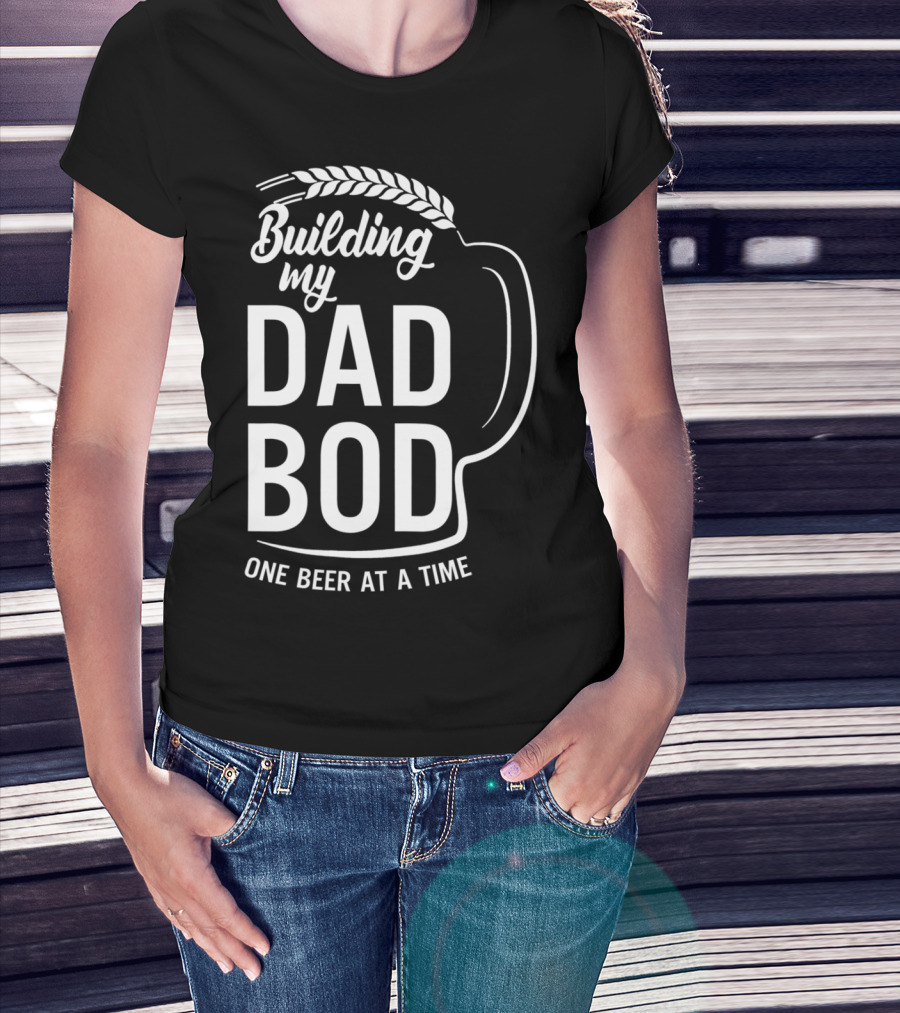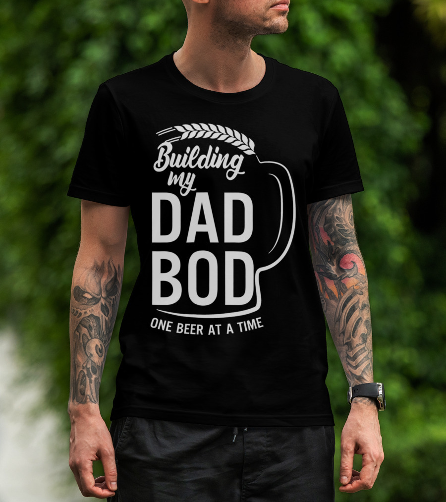 The Building My Dad Bod One Beer at a Time T-shirt is designed for everyday wear and a consistent fit. Fabric is pre-shrunk ring-spun cotton with durable stitching. See the size chart below for exact measurements.