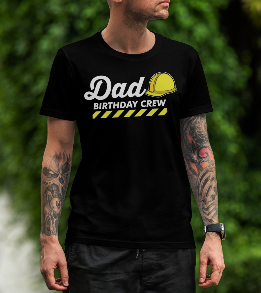 The Dad Birthday Crew Hard Hat T-shirt is designed for everyday wear and a consistent fit. Fabric is pre-shrunk ring-spun cotton with durable stitching. See the size chart below for exact measurements.