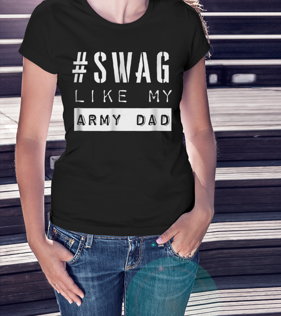 The Swag Like My Army Dad T-shirt is designed for everyday wear and a consistent fit. Fabric is pre-shrunk ring-spun cotton with durable stitching. See the size chart below for exact measurements.