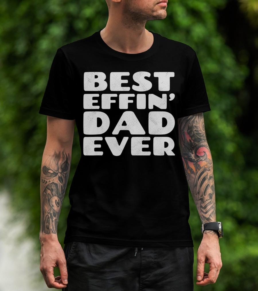The BEST EFFIN DAD EVER T-shirt is designed for everyday wear and a consistent fit. Fabric is pre-shrunk ring-spun cotton with durable stitching. See the size chart below for exact measurements.