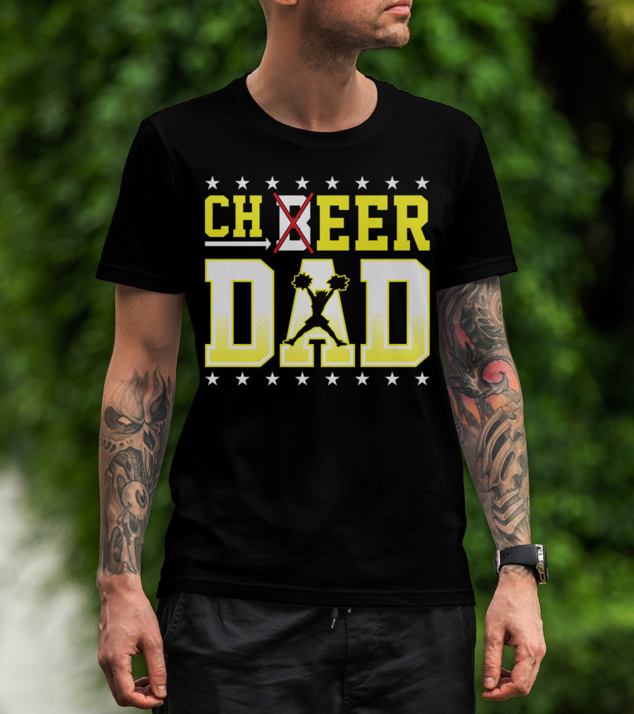 Cheer Dad Beer Dad Bold Text Stars Pom-Pom T-Shirt