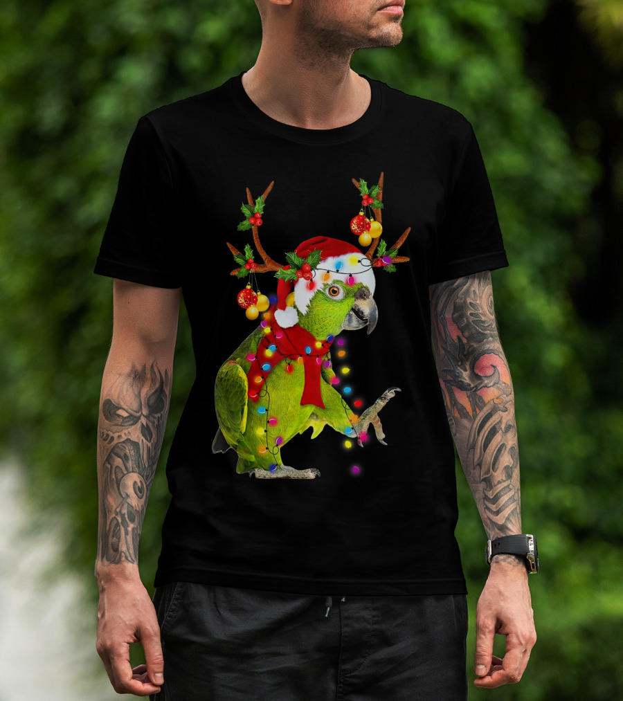 Cockatoo Parrot Reindeer Antlers Christmas Lights Santa Hat T-Shirt