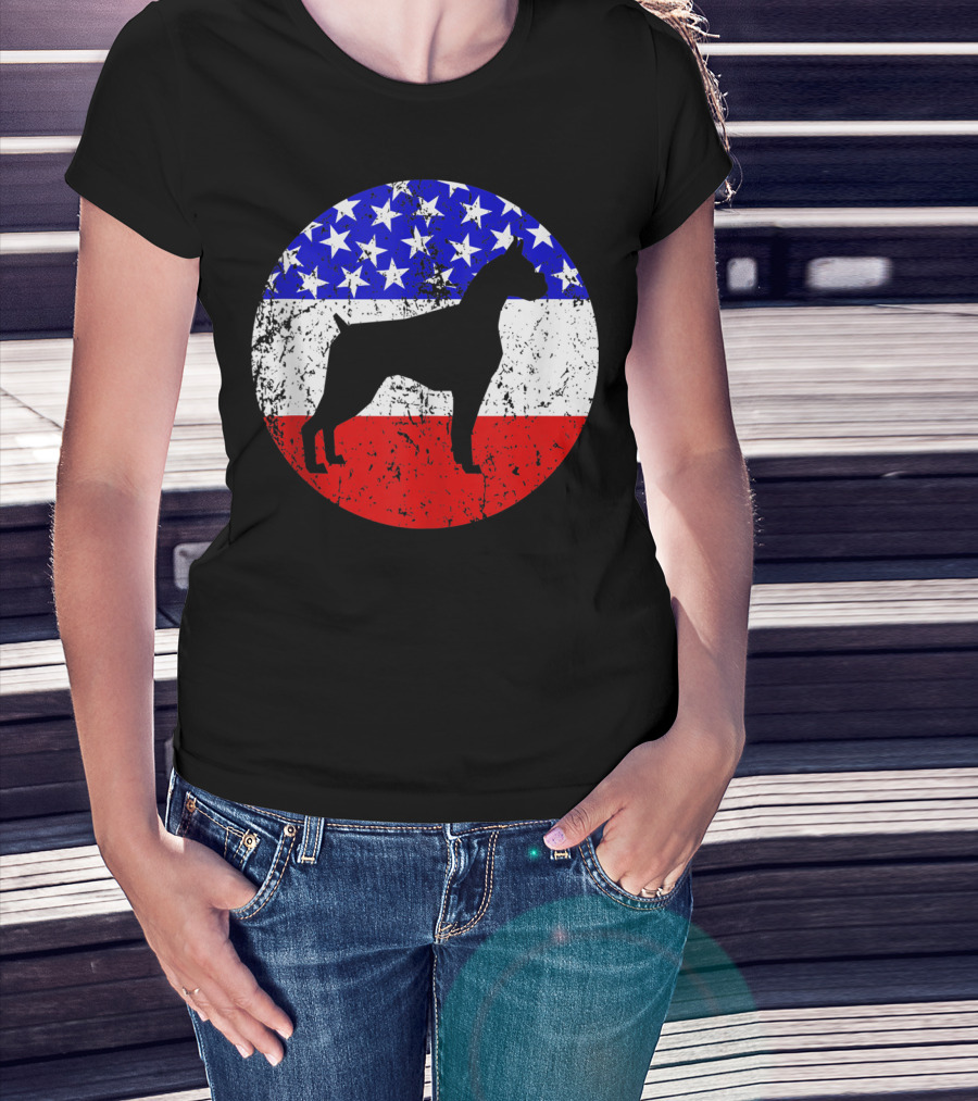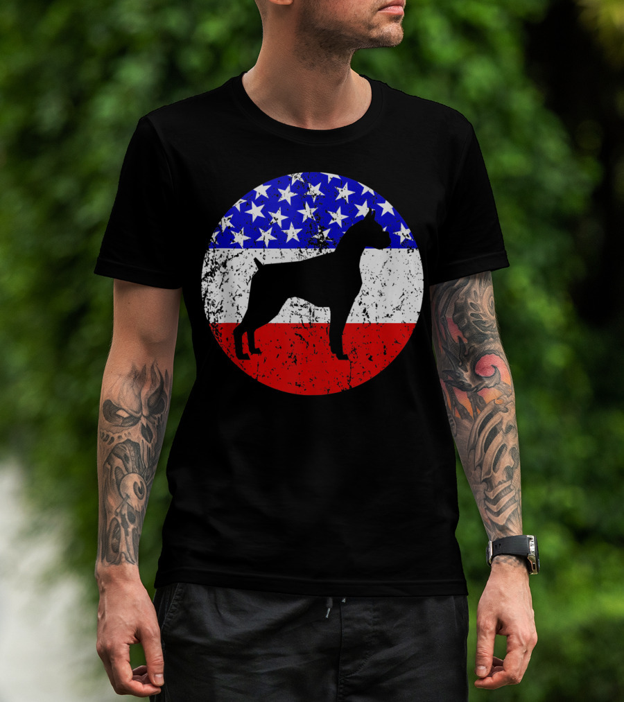 The American Flag Vintage Boxer Dog T-shirt is designed for everyday wear and a consistent fit. Fabric is pre-shrunk ring-spun cotton with durable stitching. See the size chart below for exact measurements.