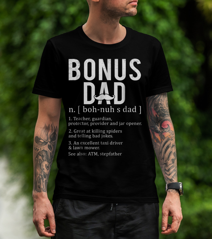 Bonus Dad Definition N Boh-Nuh S Dad Funny Teacher Protector Taxi Driver Stepdad Papa28 T-Shirt