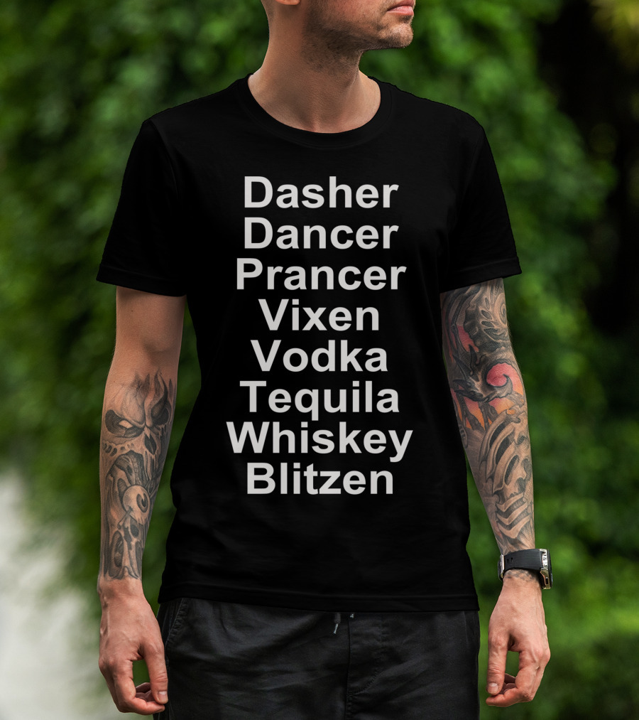 Dasher Dancer Prancer Vixen Vodka Tequila Whiskey Blitzen T-Shirt