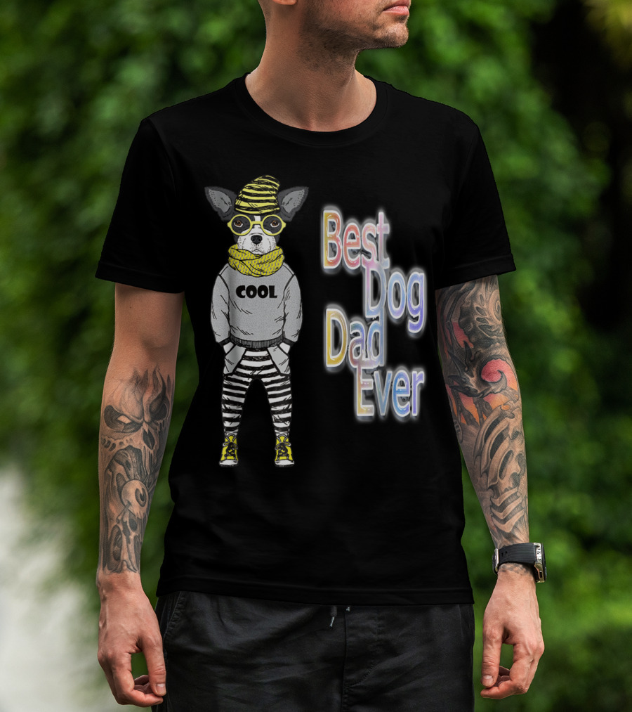 Best Dog Dad Ever Cool Fashionable Dog In Striped Pants And Glasses T-Shirt