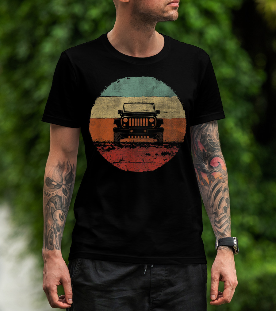 The Retro Vintage Jeeps Off Road Adventure Classic Stripes Iconic 4x4 Vehicle T-shirt is designed for everyday wear and a consistent fit. Fabric is pre-shrunk ring-spun cotton with durable stitching. See the size chart below for exact measurements.