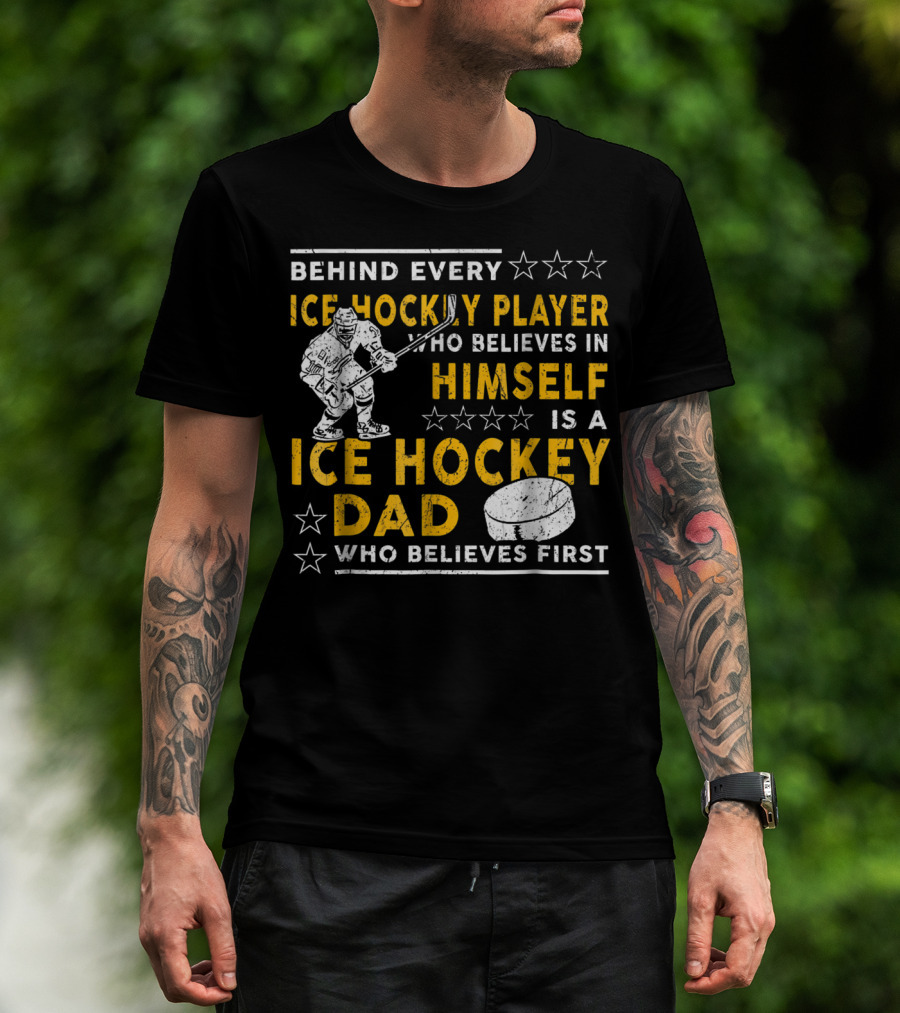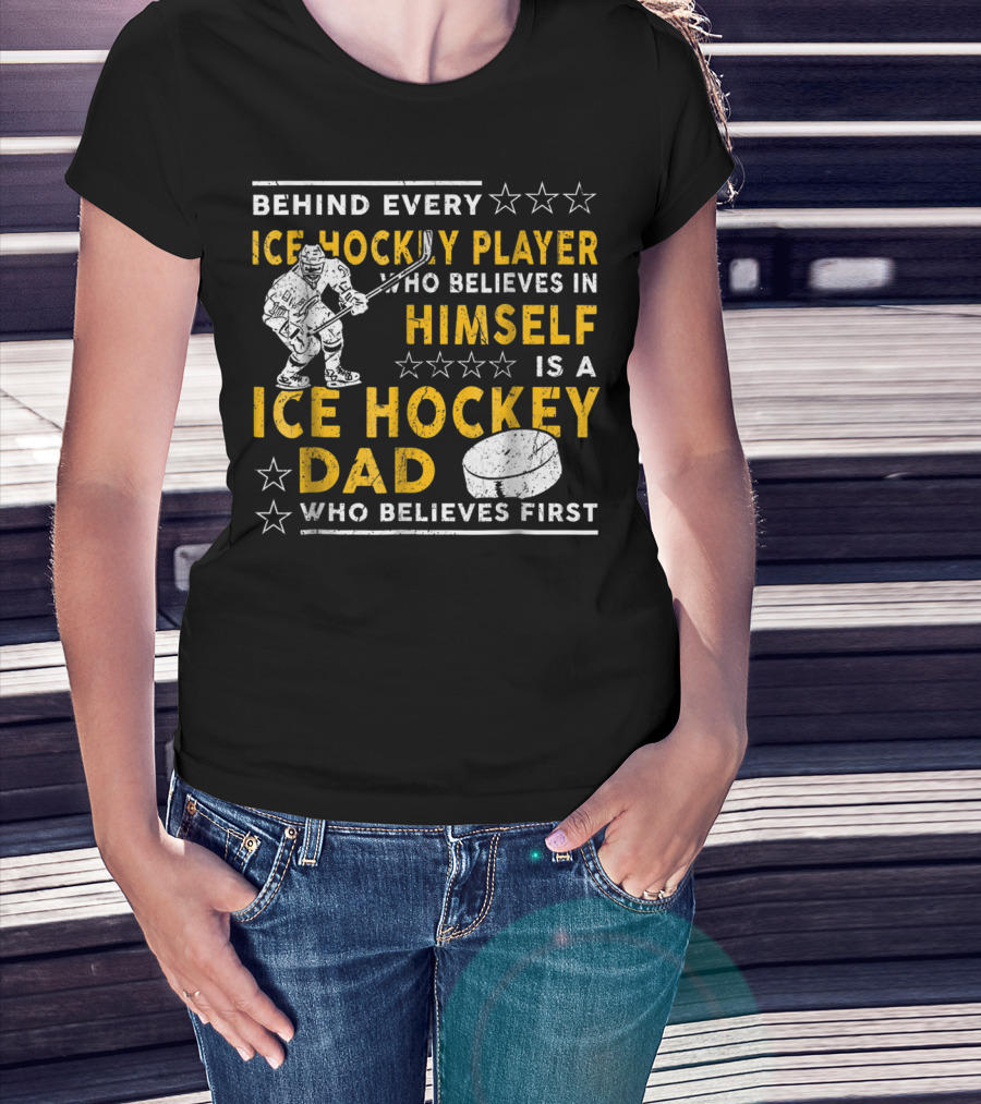 Behind Every Ice Hockey Player Who Believes In Himself Is A Ice Hockey Dad Who Believes First T-Shirt