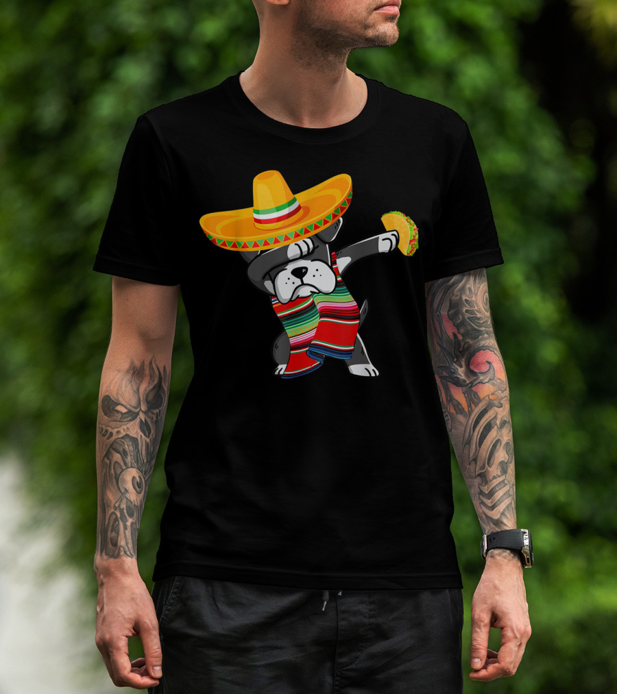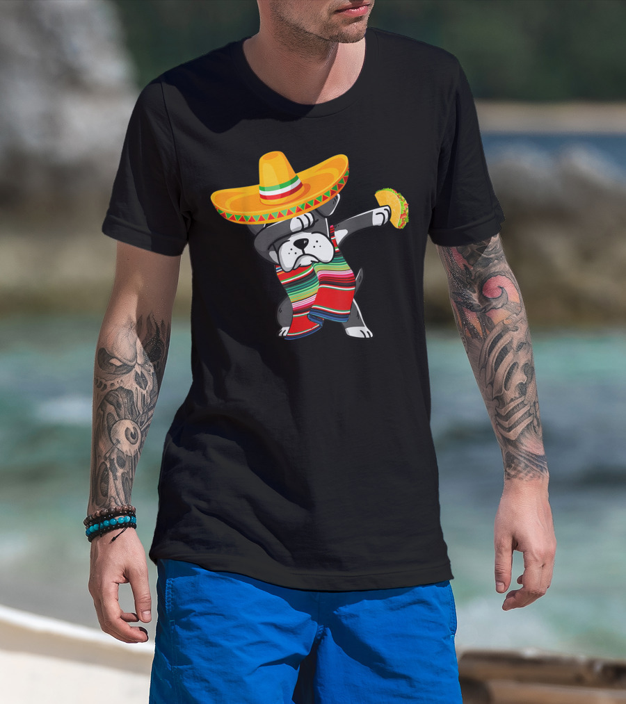 Boxer Dabbing Sombrero Taco Cinco De Mayo Dog T-Shirt