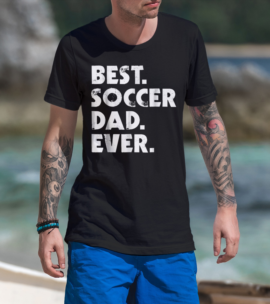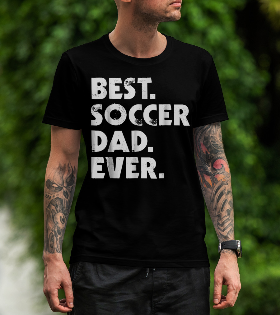 The Best Soccer Dad Ever T-shirt is designed for everyday wear and a consistent fit. Fabric is pre-shrunk ring-spun cotton with durable stitching. See the size chart below for exact measurements.