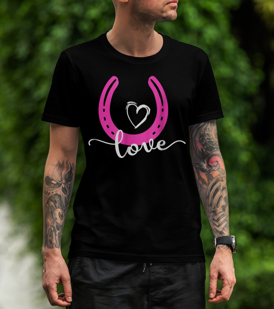 Love Horseshoe Heart Pink Cute Horse T-Shirt
