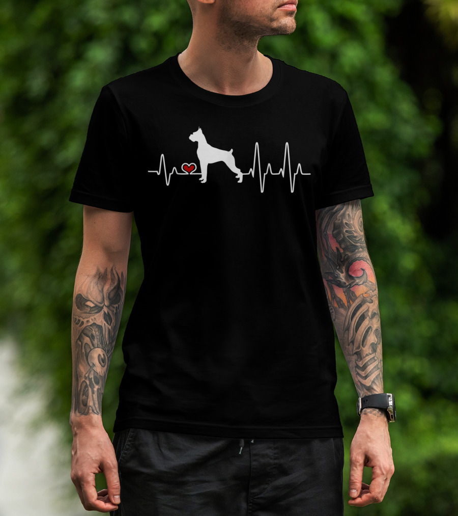 Boxer Dog Heartbeat With Pulse And Red Heart T-Shirt