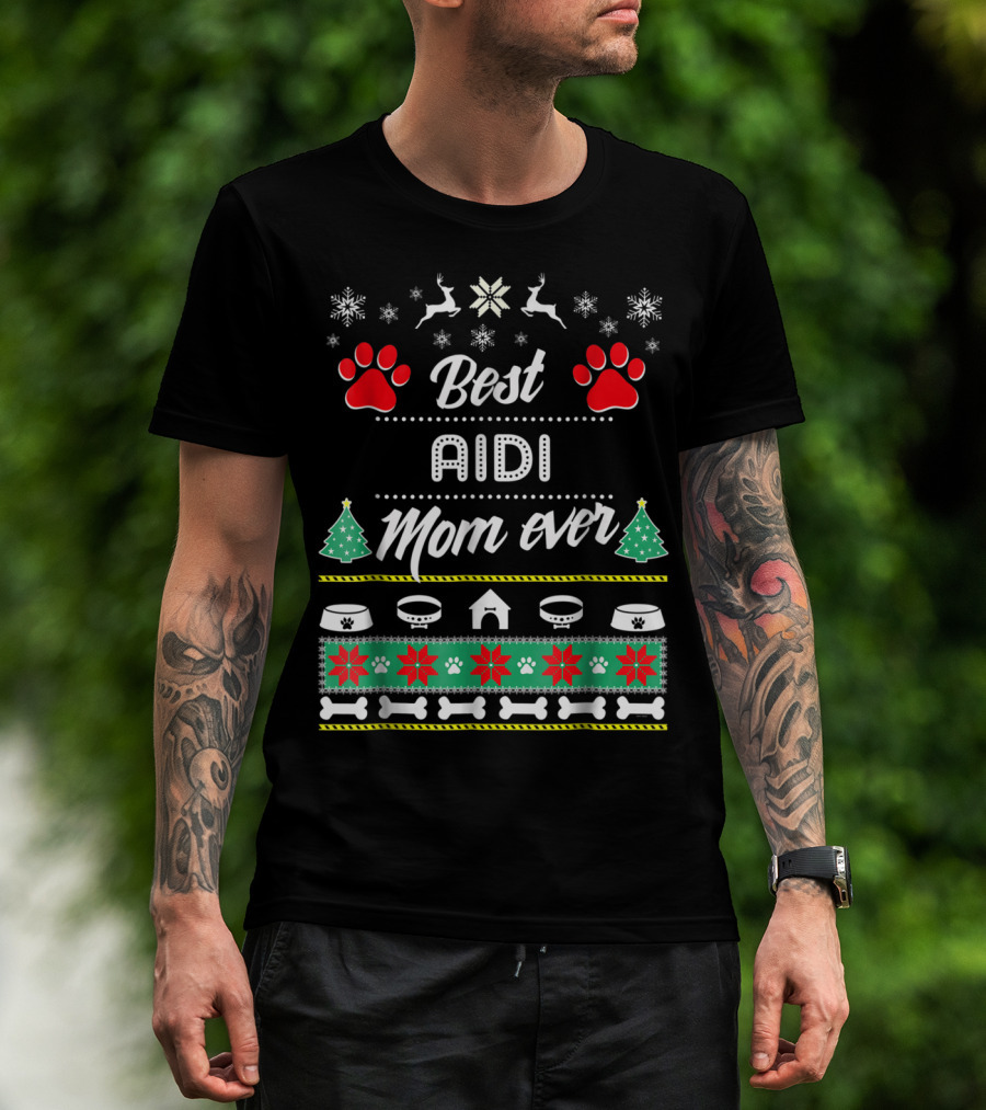 Best Aidi Mom Ever Christmas Paw Prints T-Shirt