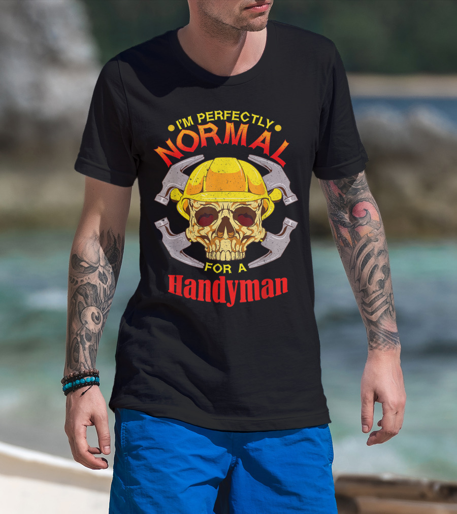 The I'm Perfectly Normal for a Handyman T-shirt is designed for everyday wear and a consistent fit. Fabric is pre-shrunk ring-spun cotton with durable stitching. See the size chart below for exact measurements.